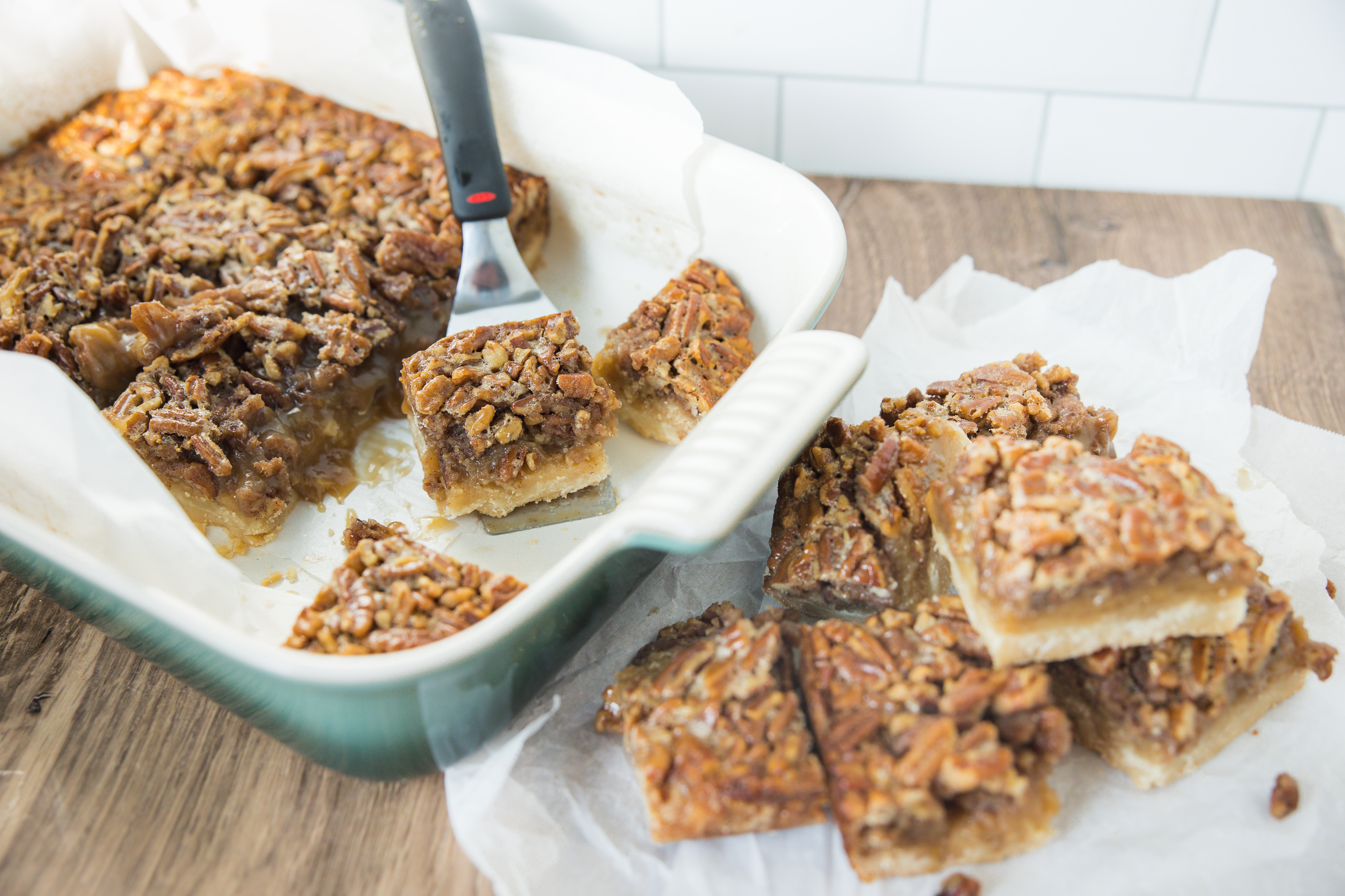 Don't show up to the potluck empty-handed! Bring a smile to the nut-lovers in your life with these Potluck Pecan Pie Bars! These are like a pecan pie experience in miniature form — the ooey-gooey, brown sugar smoky sweet, and nutty filling with a buttery crust! Everyone is going to want a slice of these Potluck Pecan Pie Bars... actually, make that two slices!