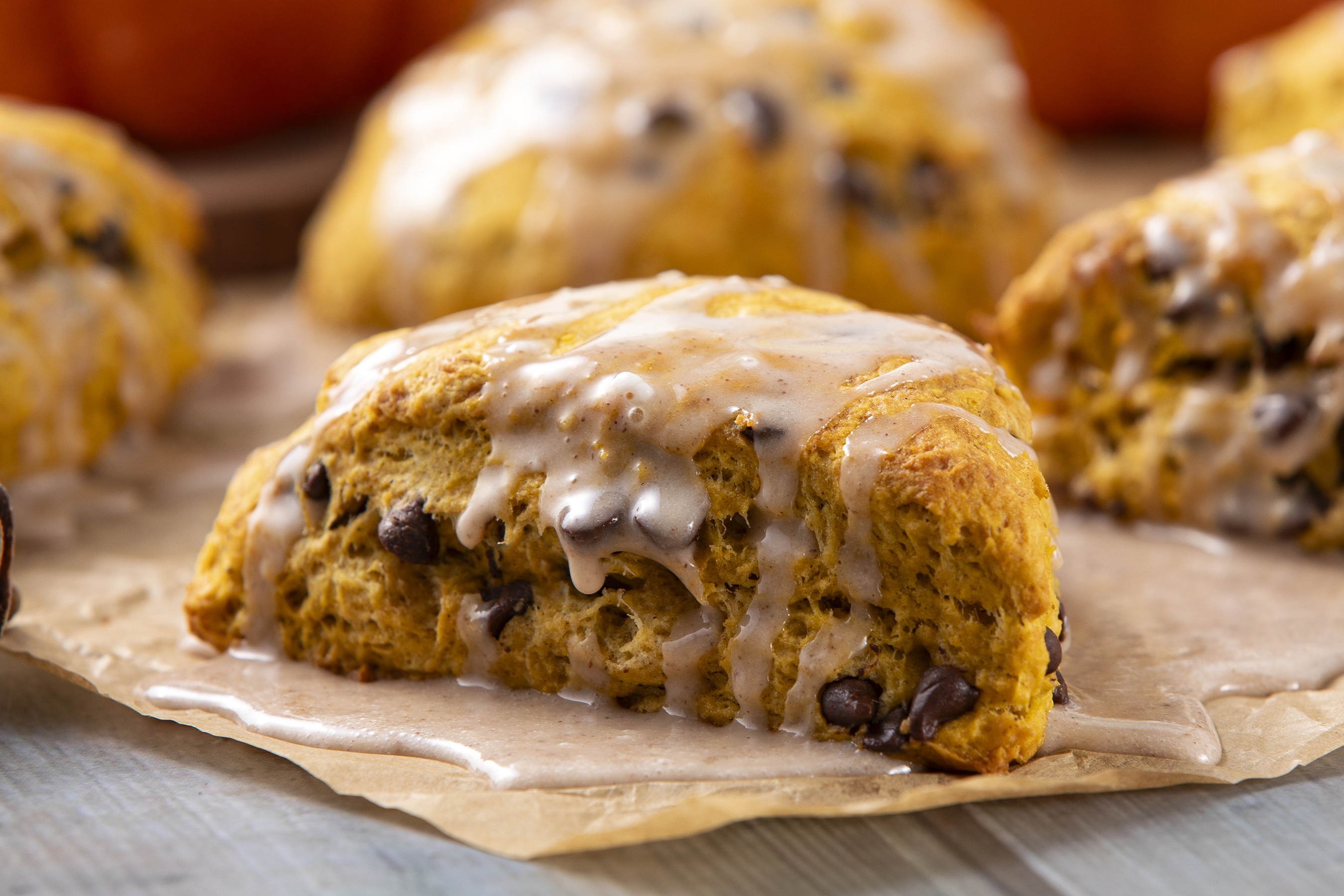 From the coffee shop to your kitchen, while still being as fragrant and enticing as ever, these little treats make quite an impression! Pumpkin Spice Chocolate Scones are infused with warm, autumnal flavors of pumpkin and the best accompanying spices... and then come the melty, rich chocolate chips! Oh, and don't forget the sumptuous cinnamon glaze on top! Pumpkin Spice Chocolate Scones are like the best of fall in pastry form!