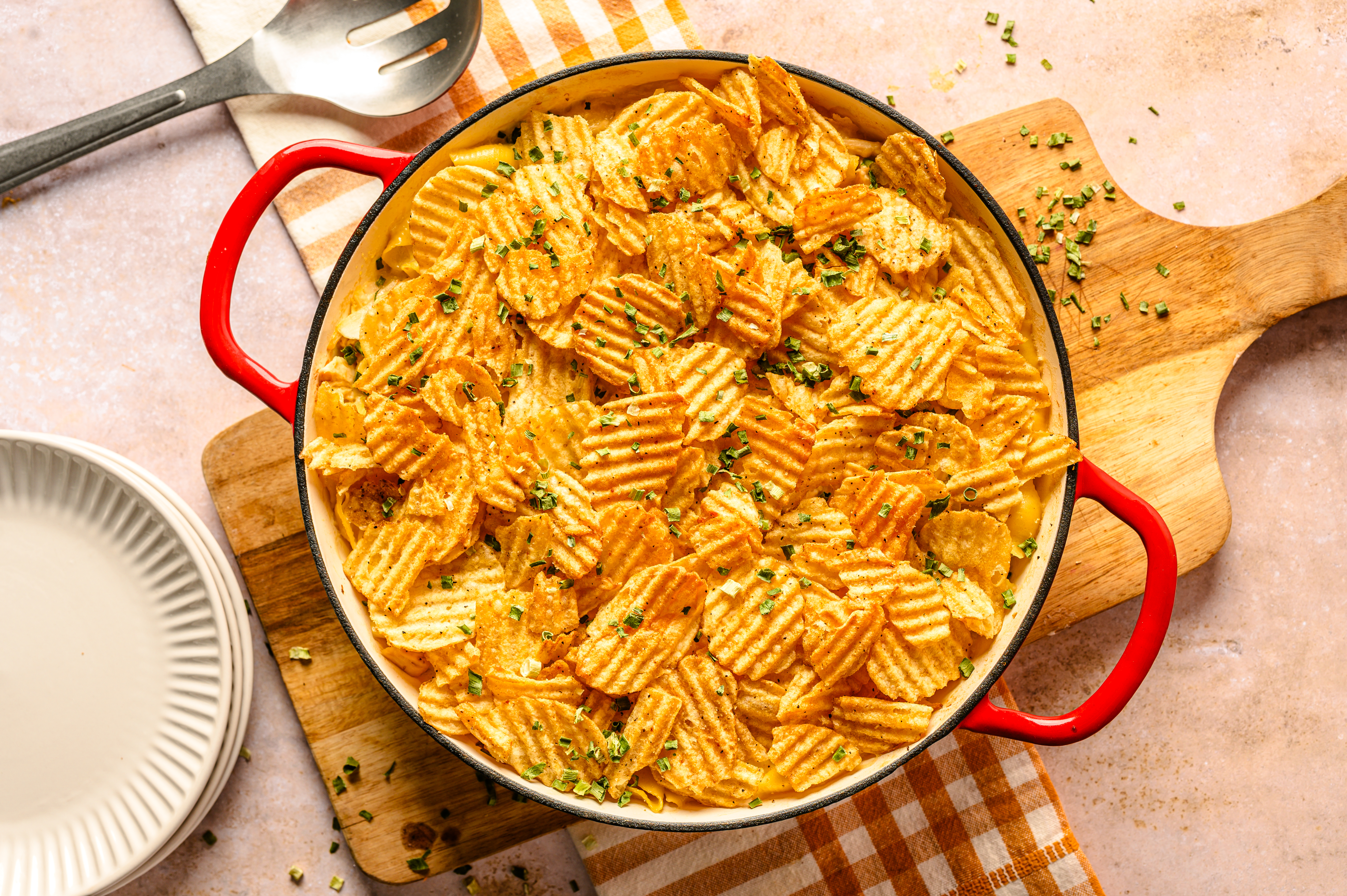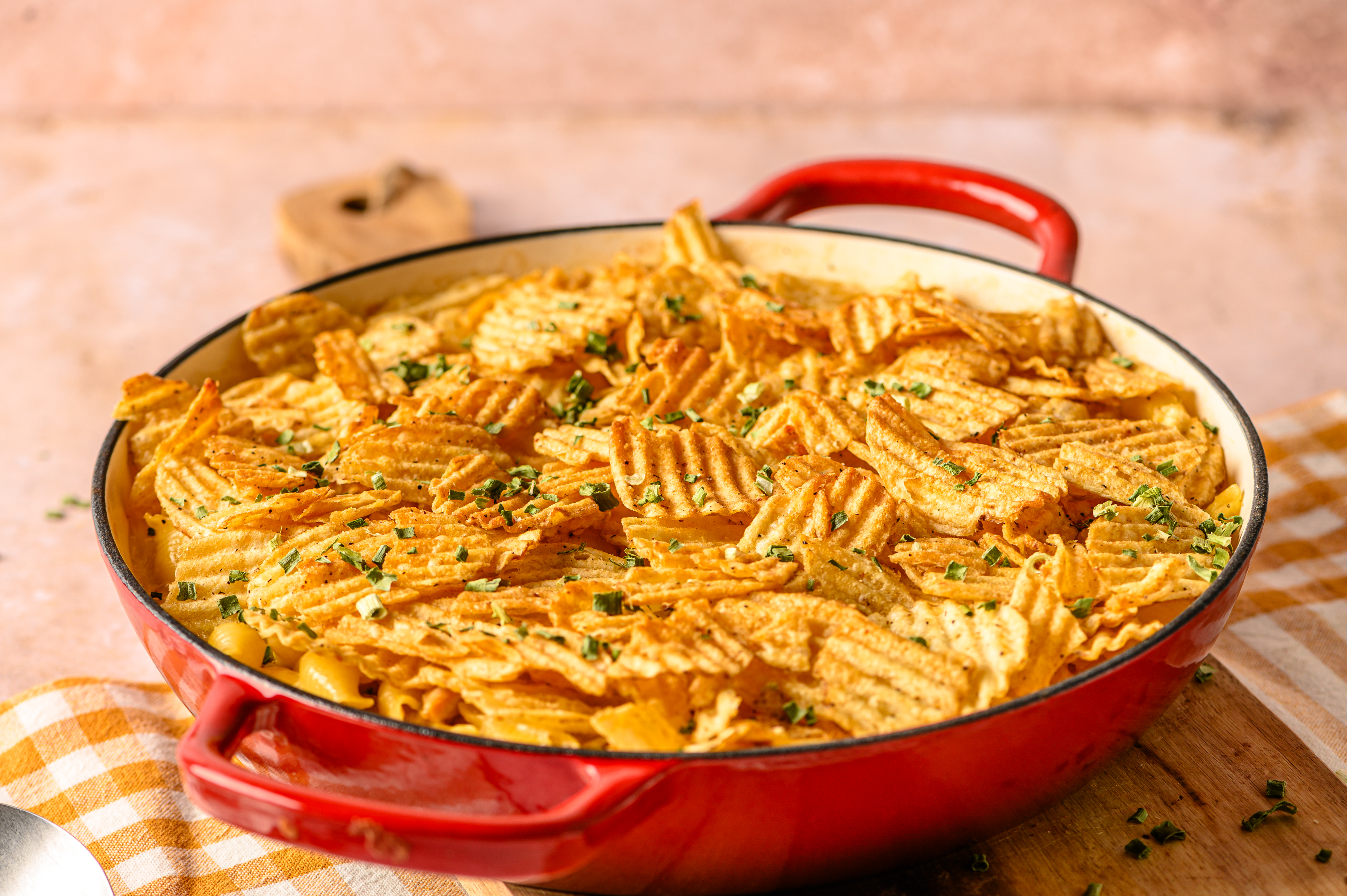 Step 13 -Top the chicken mixture with the potato chips.
