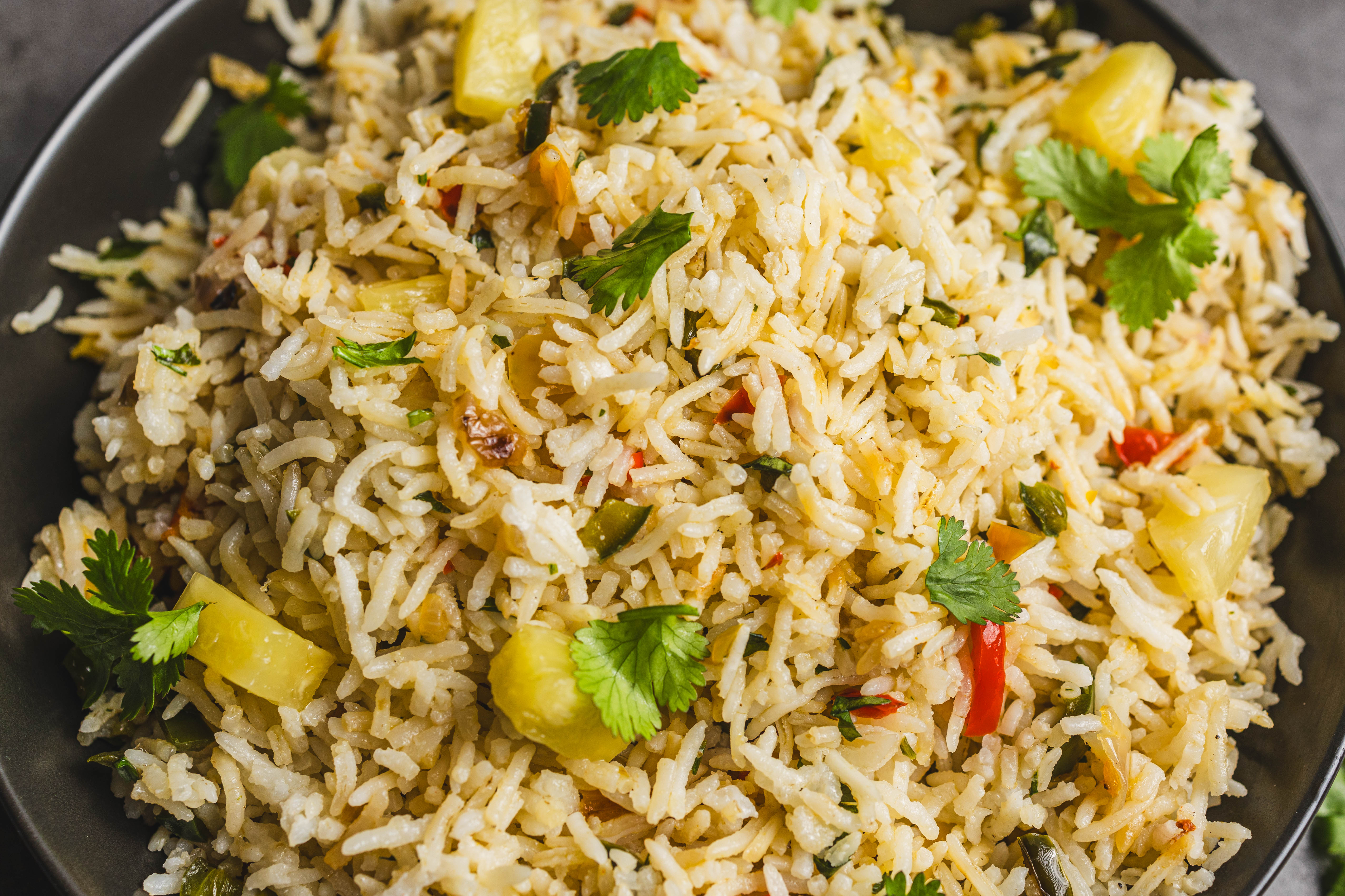 It may not have all the colors of the visible light spectrum, but golly it comes close! Rainbow Rice is bursting with vibrant hues and equally vibrant flavors. The warm, delicately seasoned rice is paired with yellow tropical pineapple, bright red peppers, spicy green jalapeños, and a little cayenne seasoning for a touch more heat! Yes indeed, all that Rainbow rice is really missing is blue and purple, but hey! The flavor is perfect, so why worry?