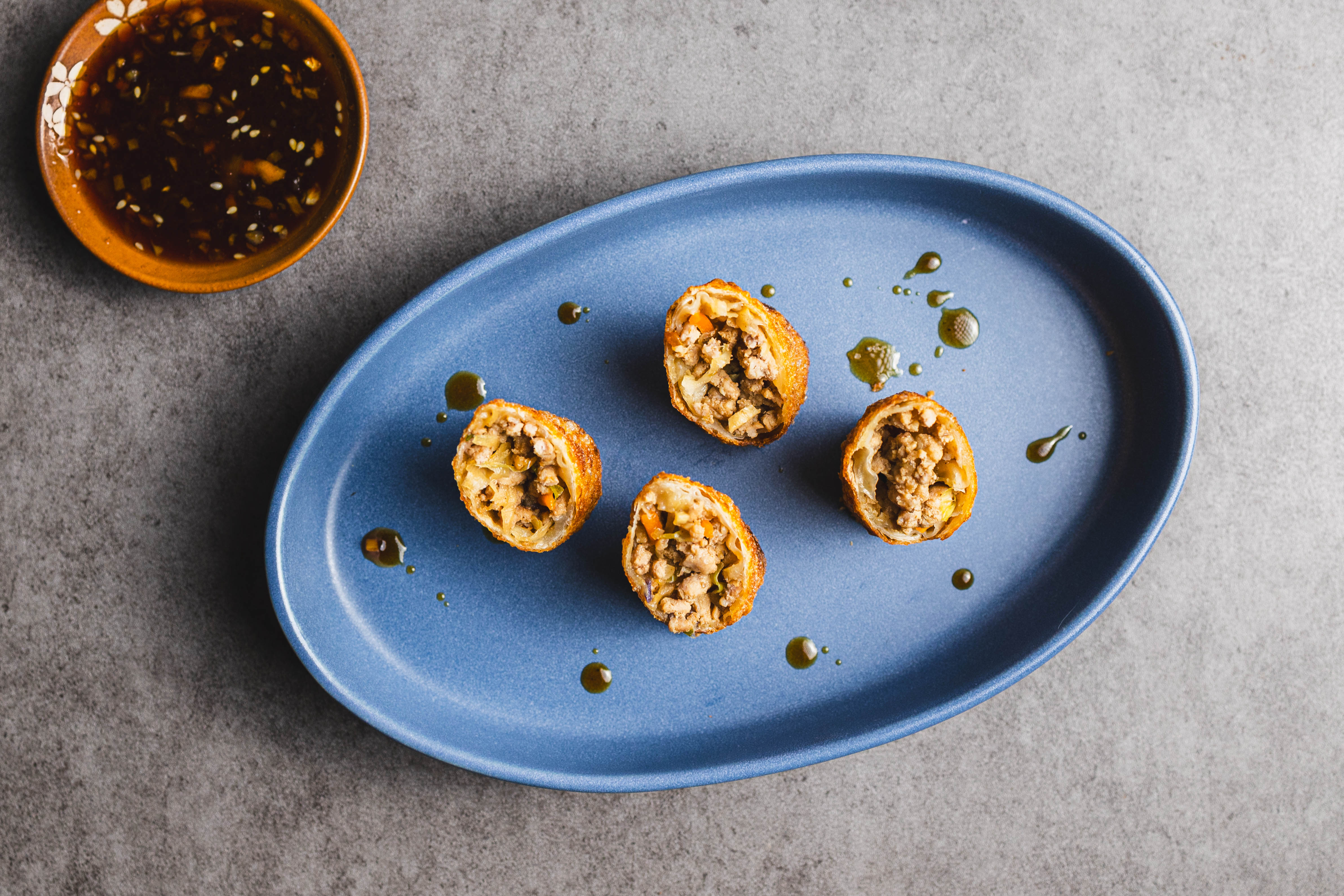 Roll up! Roll up! Everyone roll up to grab some Roll Up Egg Rolls! No need for the white boxes when you can enjoy these crispy, golden rolls of goodness fresh from your own kitchen! Inside is that savory, hearty pork and cabbage filling, with all sorts of aromatics to make each bite a joy that just keeps rolling on! With a homemade sesame sauce to really increase that umami fun, Roll Up Egg Rolls get the good times rolling!