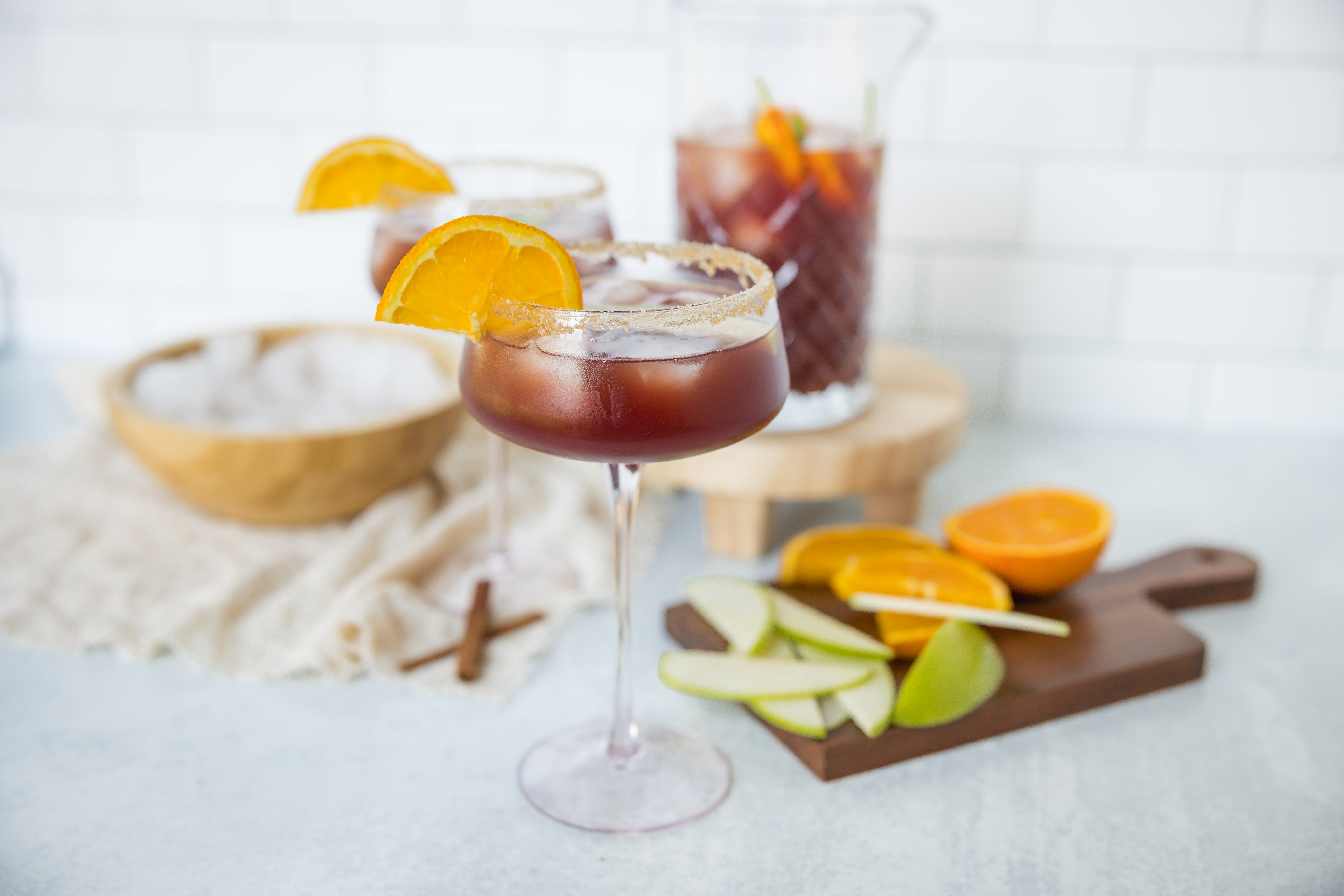 A delightful harvest season needs the perfect seasonal brew to make it complete! September Cider Sangria is that drink! Fruity and earthy red wine is infused with crisp apple and orange liqueur, as well as a touch of sweet maple syrup. With a hint of orange and a cinnamon-sugar rim, September Cider Sangria will captivate from the first sip!