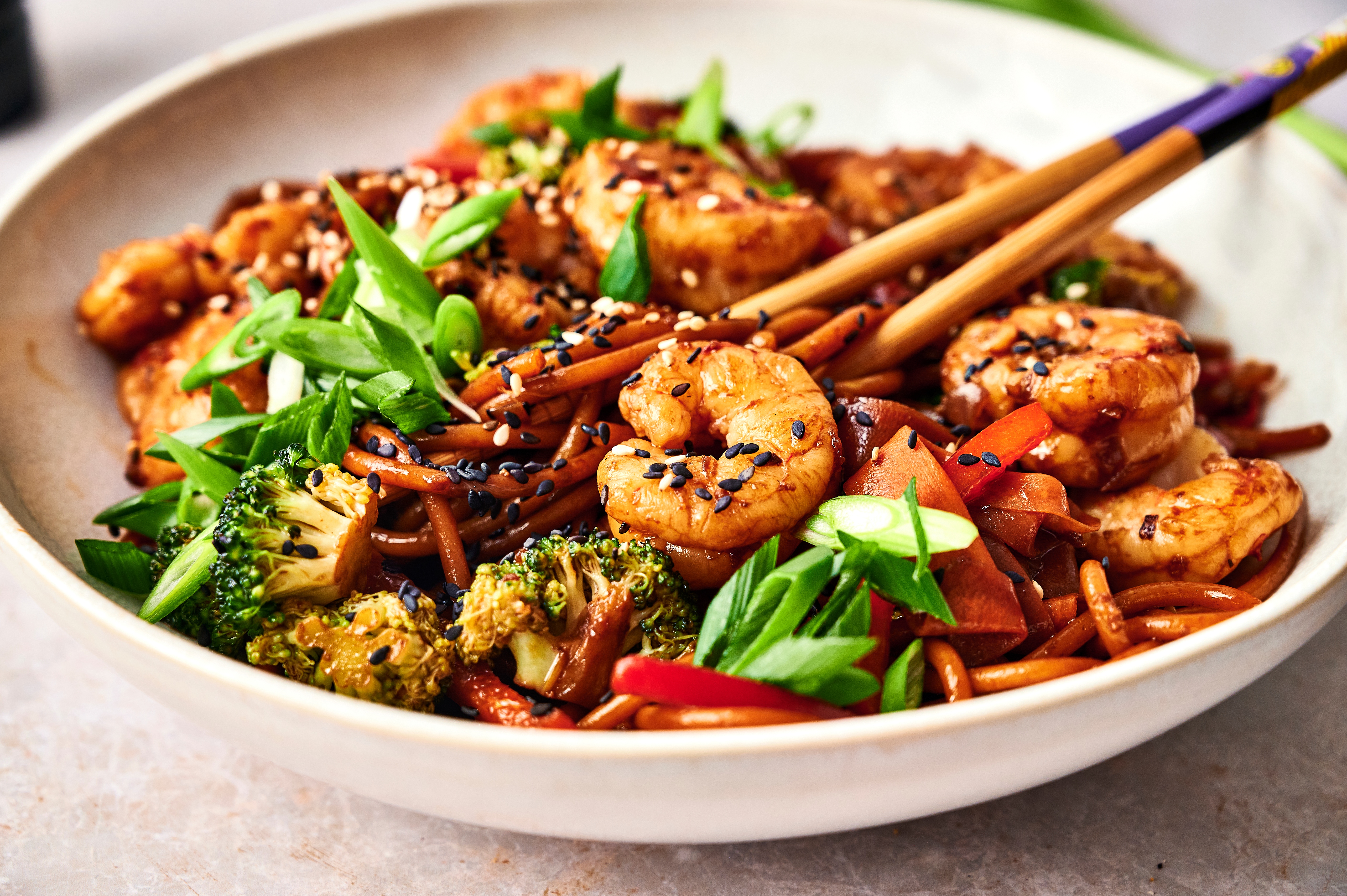 Sometimes we overcomplicate things and we really don't need to. Simple Shrimp Lo Mein proves to you with its bold flavors that less is more! You'll think so too once you taste these warm noodles twirled with fresh veggies and plump shrimp in a tangy sauce. Ready in minutes, Simple Shrimp Lo Mein will show your taste buds what big (easy) flavors taste like!