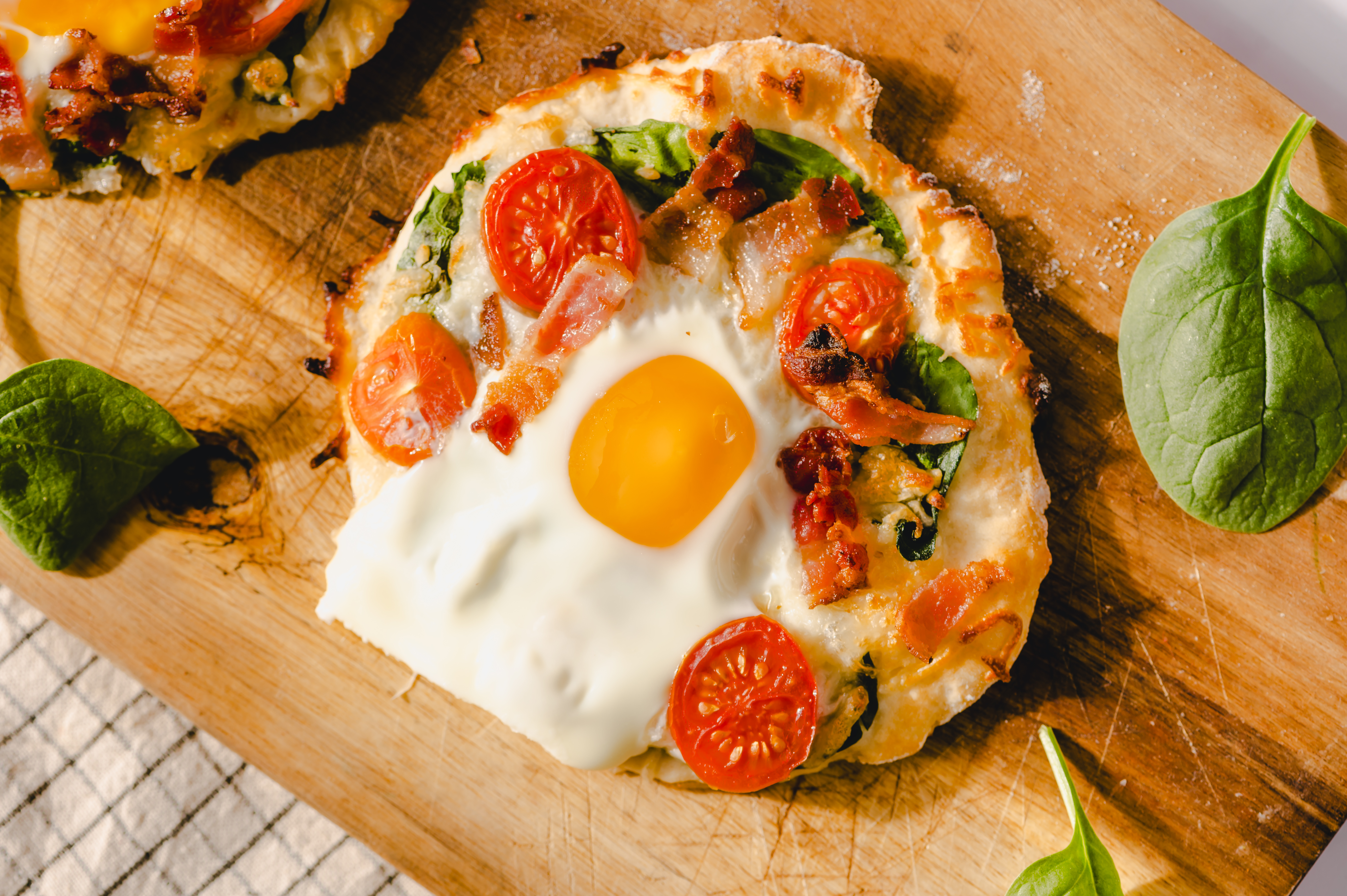 Hit the snooze button on boring breakfast fare! Snoozefest Pizza will have you up and at 'em to start the day off right! A super easy, homemade crust is quickly put together, then topped with baby spinach, mozzarella cheese, cherry tomatoes, an egg, and some savory bacon pieces for the breakfast of (wide-awake) champions! Don't sleep on this one, Snoozefest Pizza will reawaken your love for a great breakfast. And overnight your whole family will become morning people again! You snooze, you lose!