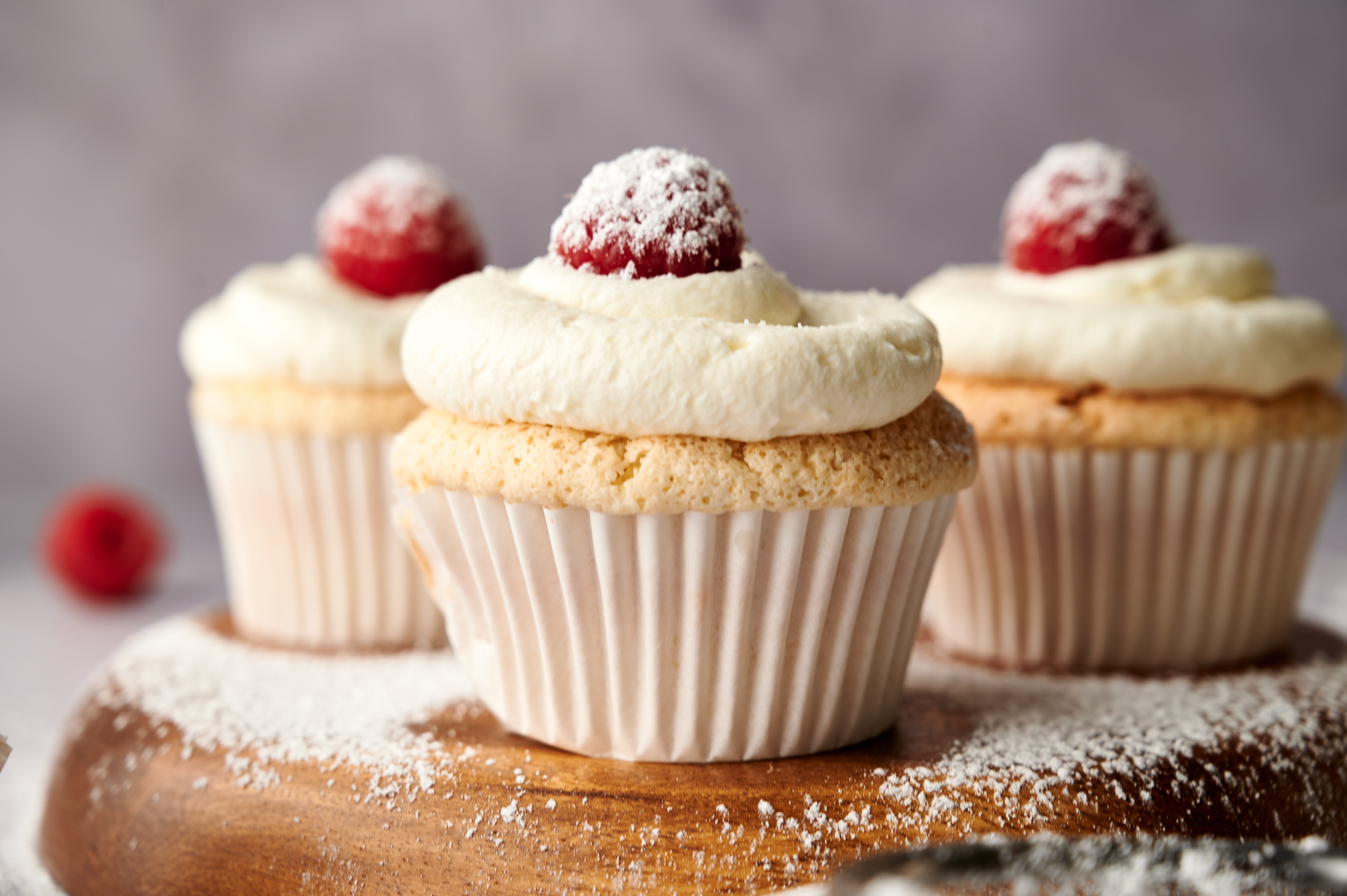 When beauty and food collide, it's such a wonderful treat! Snow-Kissed Cupcakes are not only beautiful, they are super yummy, too! Light and airy angel food cupcakes are topped with sweet whipped cream, a fresh raspberry, and gently glistening with a dusting of confectioners' sugar. Warm a blustery winter's day with Snow-Kissed Cupcakes for an enchanting and delightful dessert. It's a sweet vision to behold!