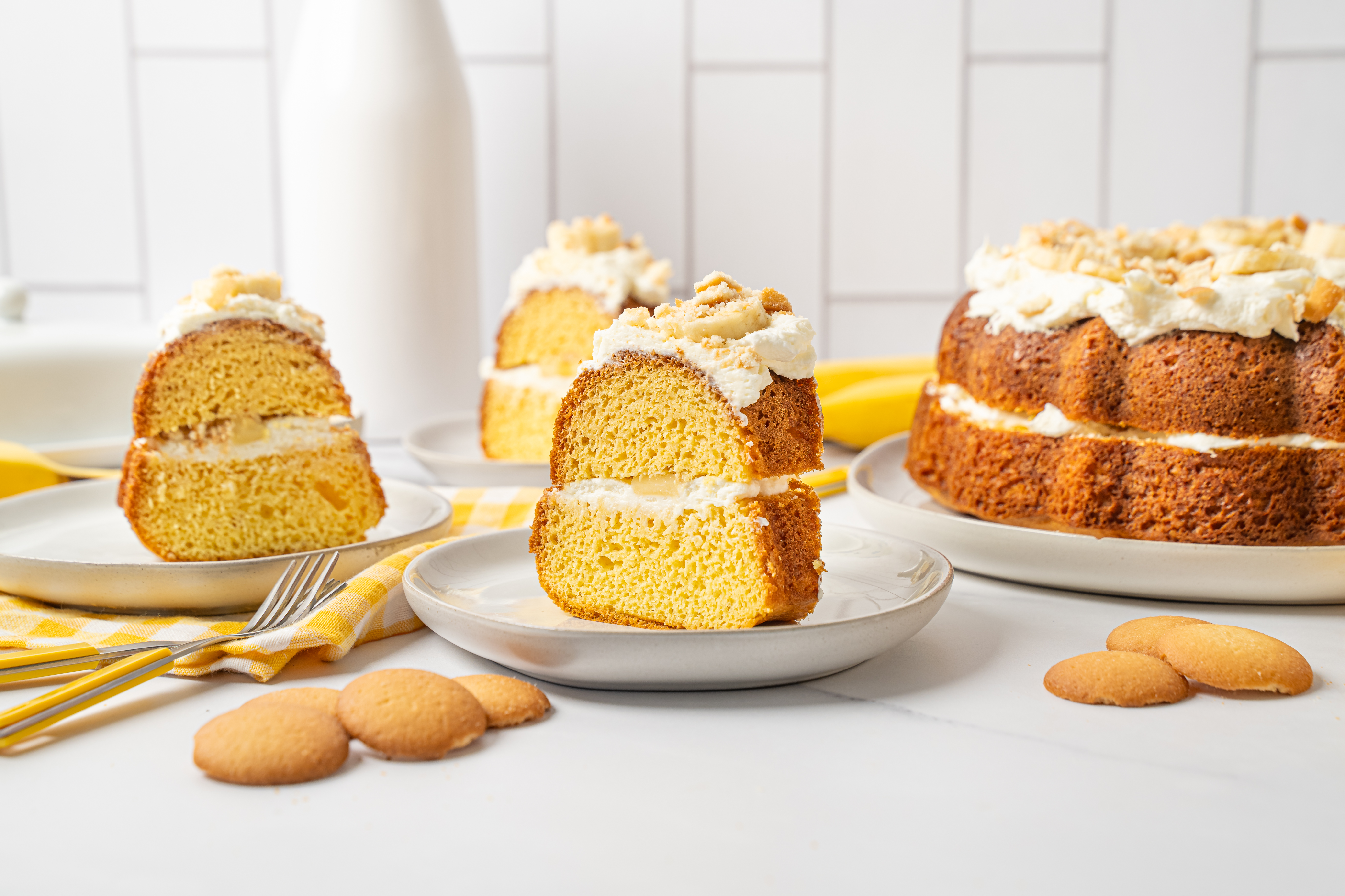 Let your dessert table blossom with a beautiful new addition! Spring Bundt™ Cake is in full bloom with its bounty of bananas. The moist, yellow cake is baked Bundt-style, separated, then layered and topped with a cream cheese frosting. There's even a little blanket of ripe banana slices and crushed Nilla® Wafer crumbs on top to add a little extra spring sweetness. Fluttering with freshness, Spring Bundt Cake is an awakening of incredible banana taste. 'Tis the season of bringing your dessert menu back to life!