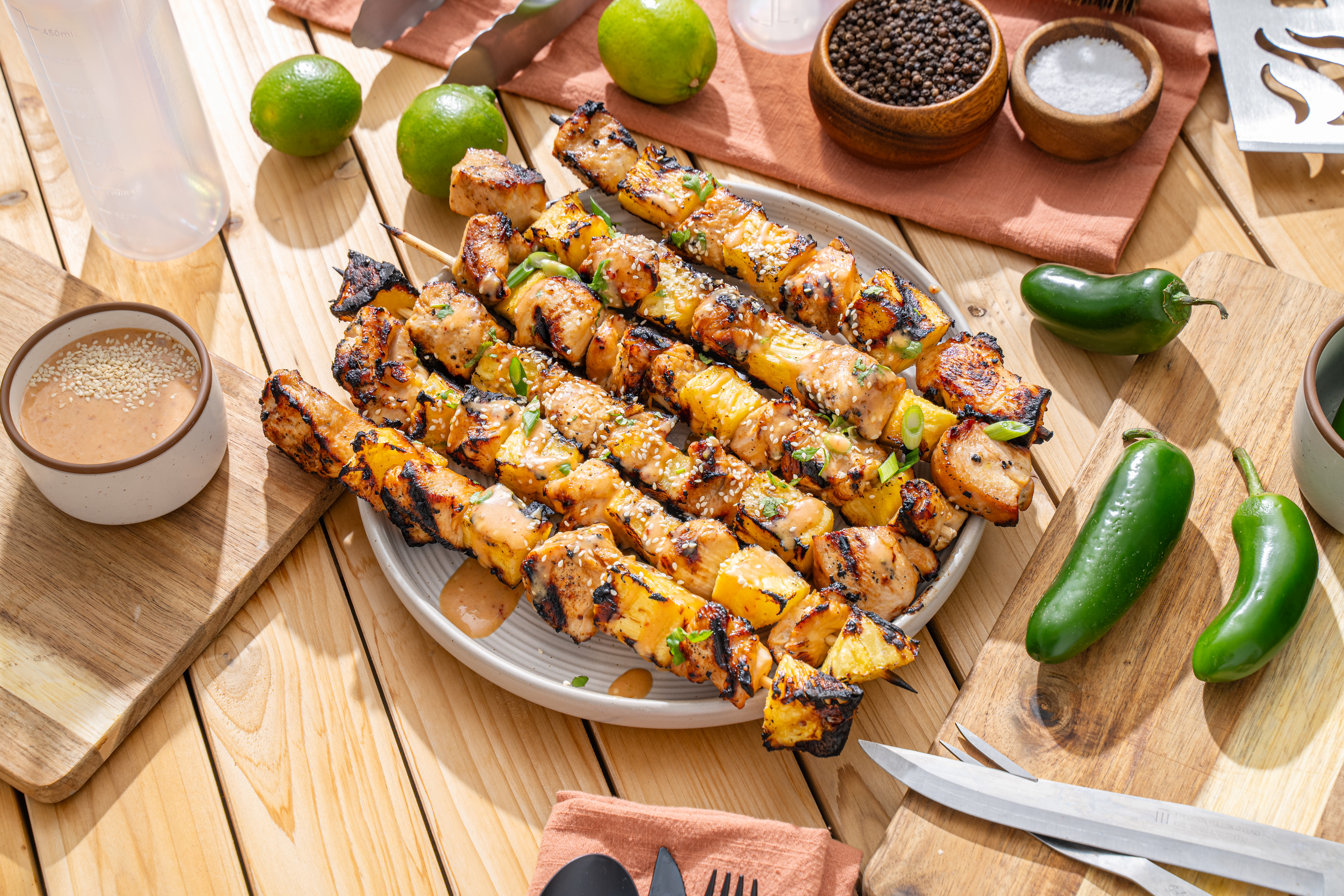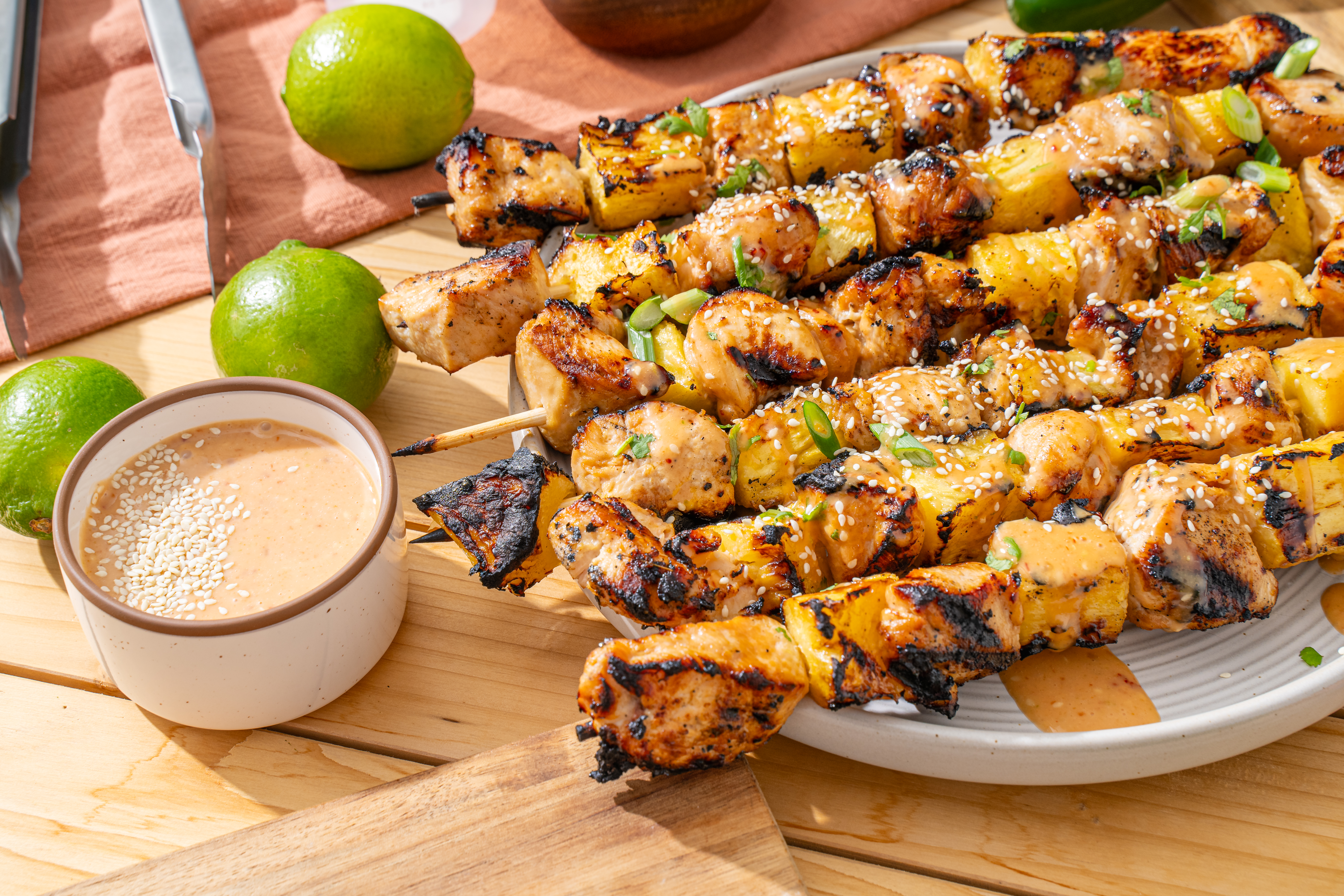 Spring Chicken Kabobs are the perfect way to get the grill fired up again after a long winter hiatus. The chicken is tender and savory, coated in a sweet, nutty, and spicy sauce and served on skewers with tropically sweet pineapple! But of course, a kabob without a sauce just won't do, so Spring Chicken Kabobs are served up with a tangy and sweet sesame chili sauce. Spring is in the air and spring flavors are dancing on your tongue!