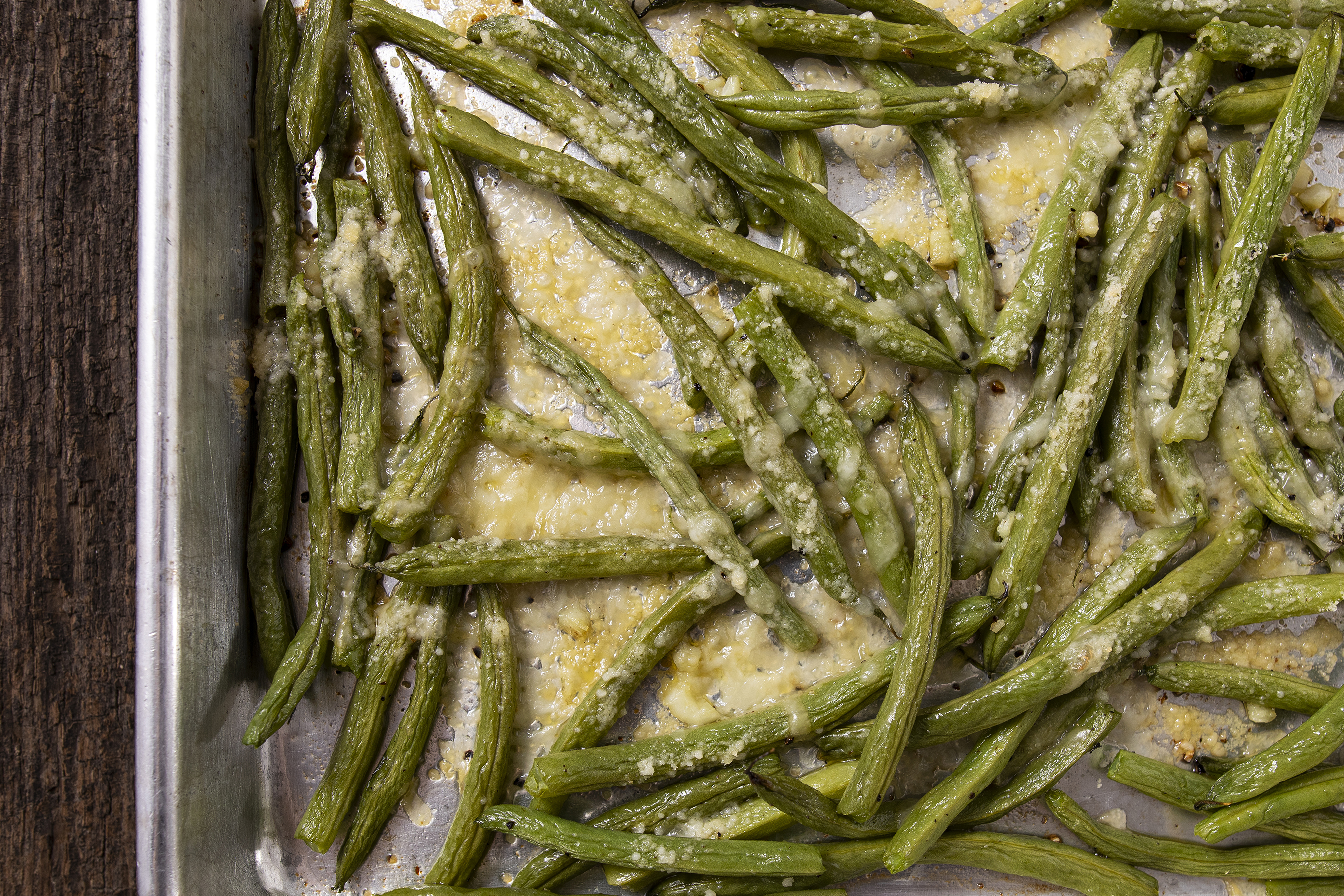 Step 5 -Top the green beans with the parmesan and the mozzarella.
