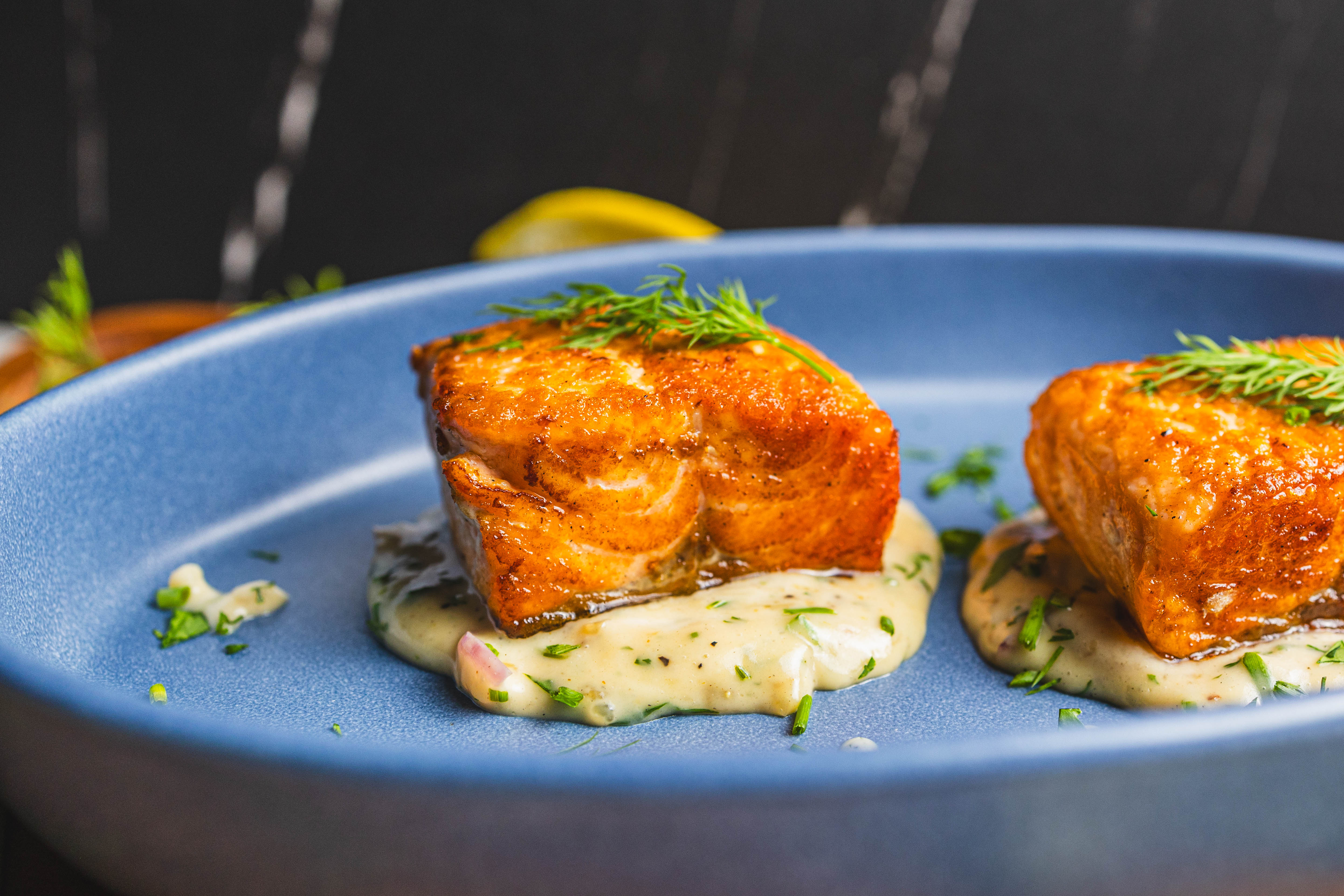 Ah, the beauty of a spring sunset; the sky a gorgeous swirl of pink and gold! Only in Spring Herb Salmon can you find such similar colors... and a taste to match! Succulent, rich salmon is pan-seared and then braised in a creamy, zesty lemon-herb sauce with the vivid fragrance of spring in each bite. Nothing is as refreshing as Spring Herb Salmon when welcoming in the new season!