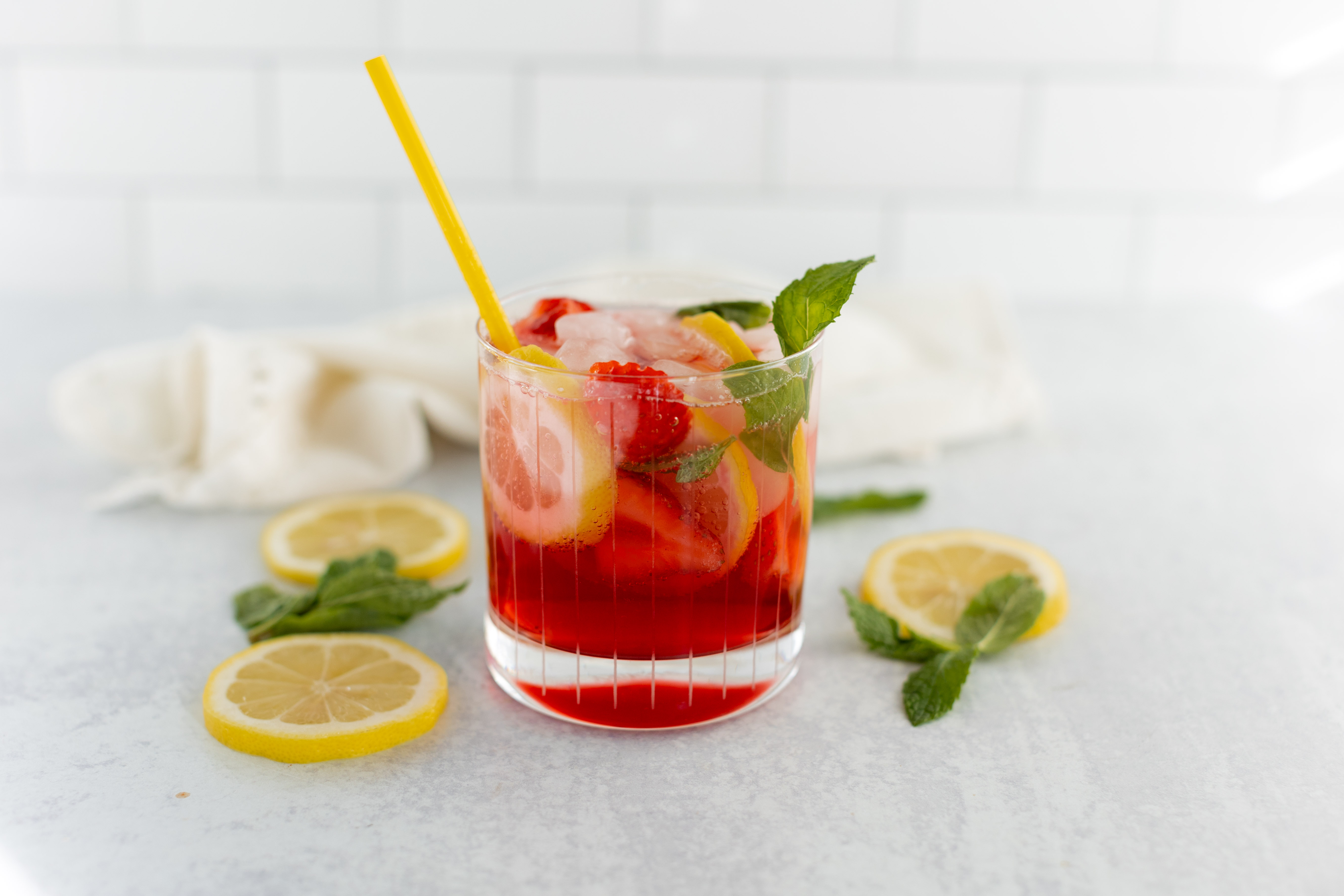 With the buds blooming all around you, you can't help but smile all the time during this refreshing, cheerful season! That's what inspired this Spring Spritzer. The brightness of the lemon and the sweetness of the strawberries mixed with the tingly vodka and tangy cranberry juice make for a very vibrant, fun drink to sip on while you're soaking up all the sunshine you've missed so dearly. There are many warm, lush, and lively days ahead, so celebrate each and every one with a Spring Spritzer!