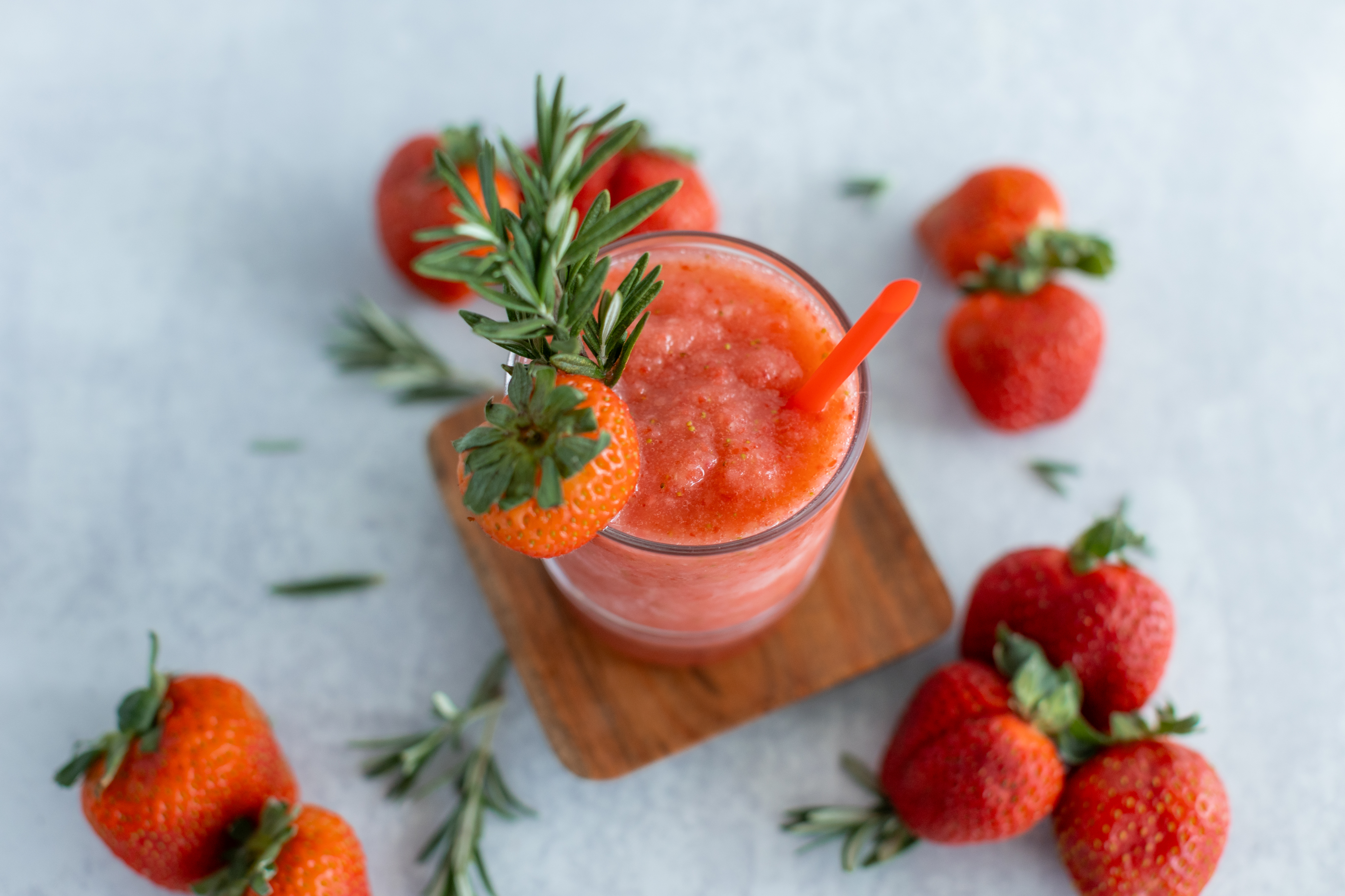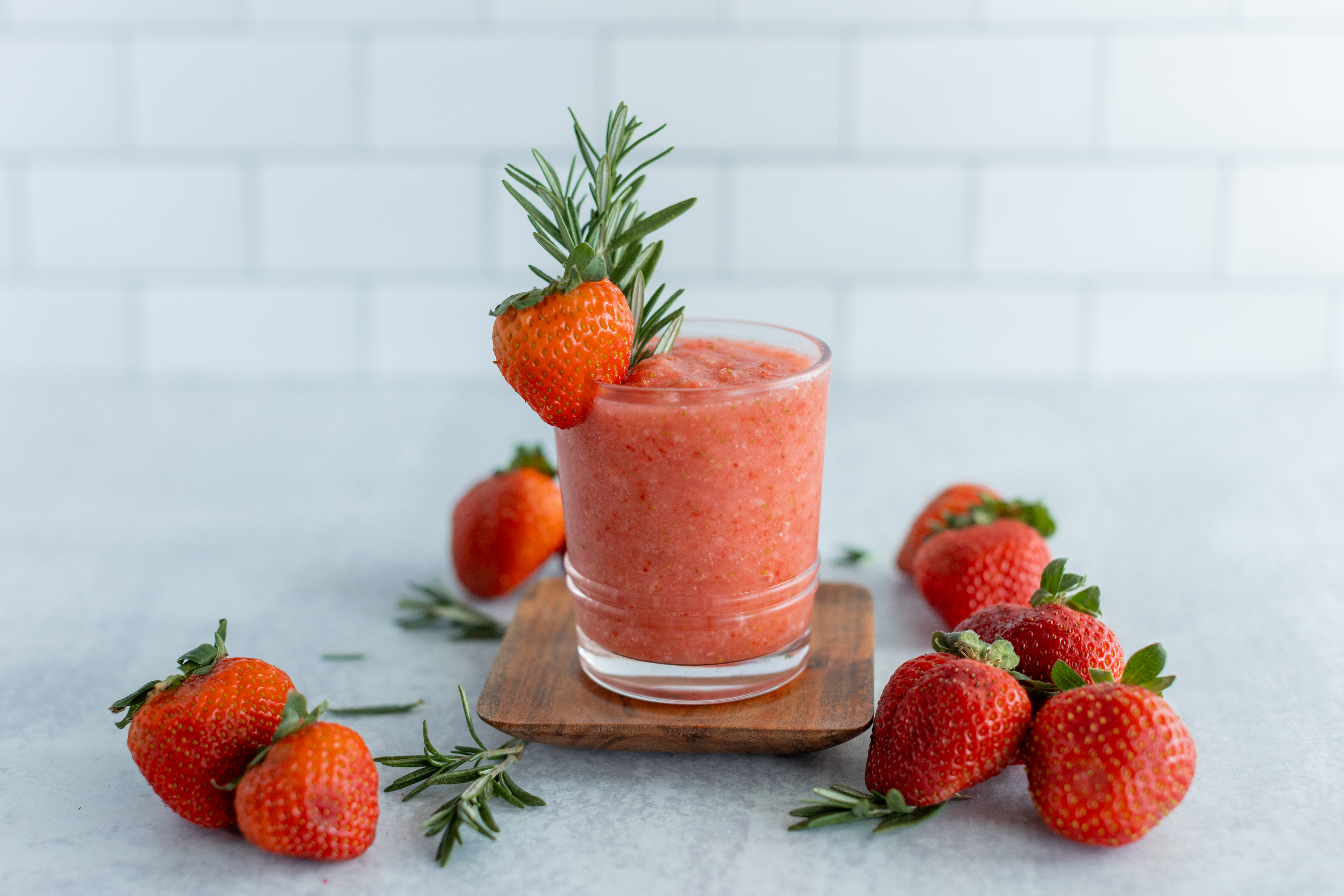 Step 10 -Garnish the filled glass with the whole strawberries and the remaining rosemary sprigs.