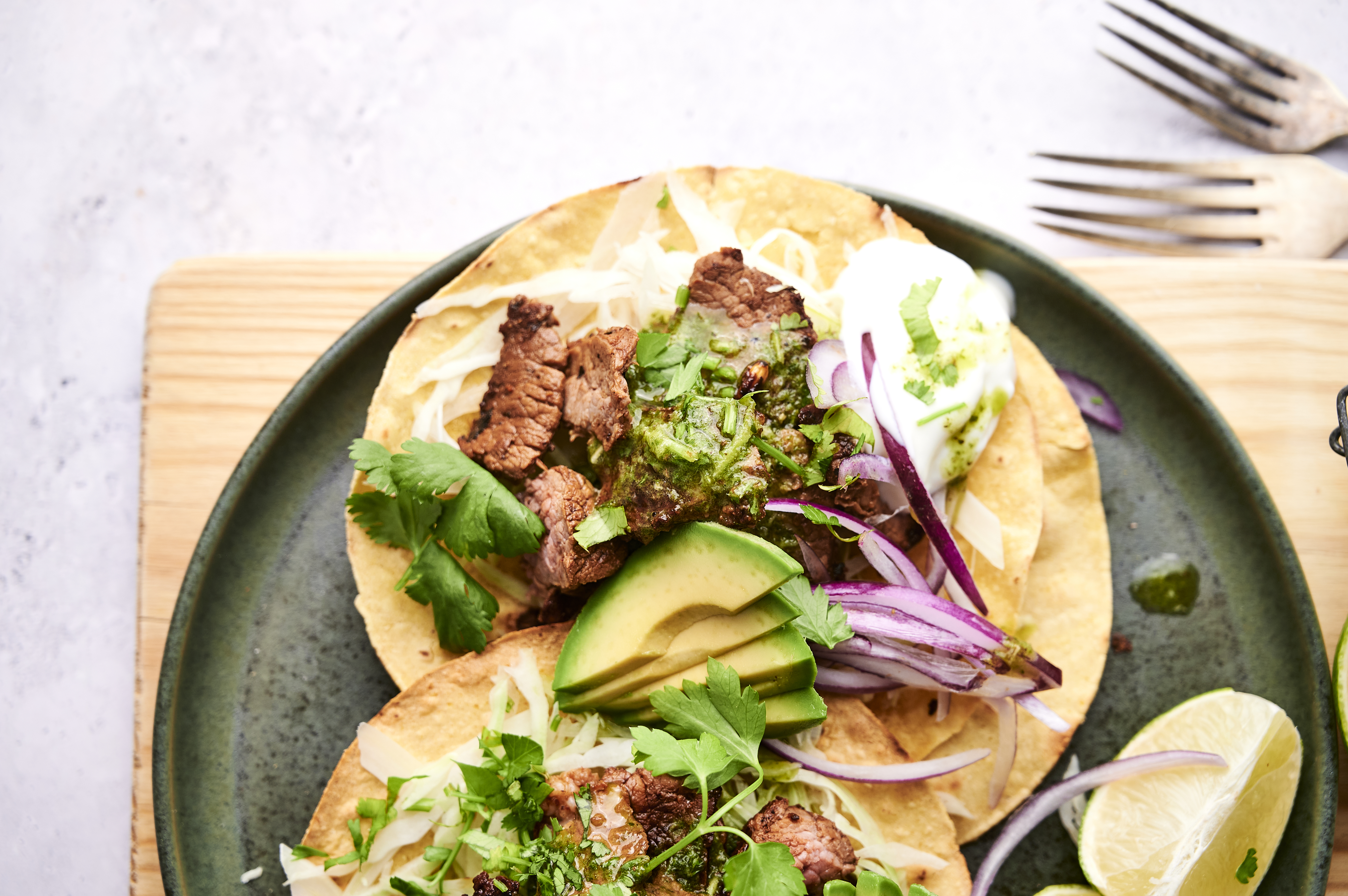 Make sure you stake your claim on these Steak-Your-Claim Tacos; you're going to want your fair share (or a little more)! Flank steak is marinated in bright, acidic lime juice and then grilled to juicy, rosy perfection! Stuff that in a tortilla and you have the foundation to the soft taco of your dreams! Top Steak-Your-Claim Tacos with all your favorite taco favorites and you'll find yourself extending Taco Tuesday well into the weekend!