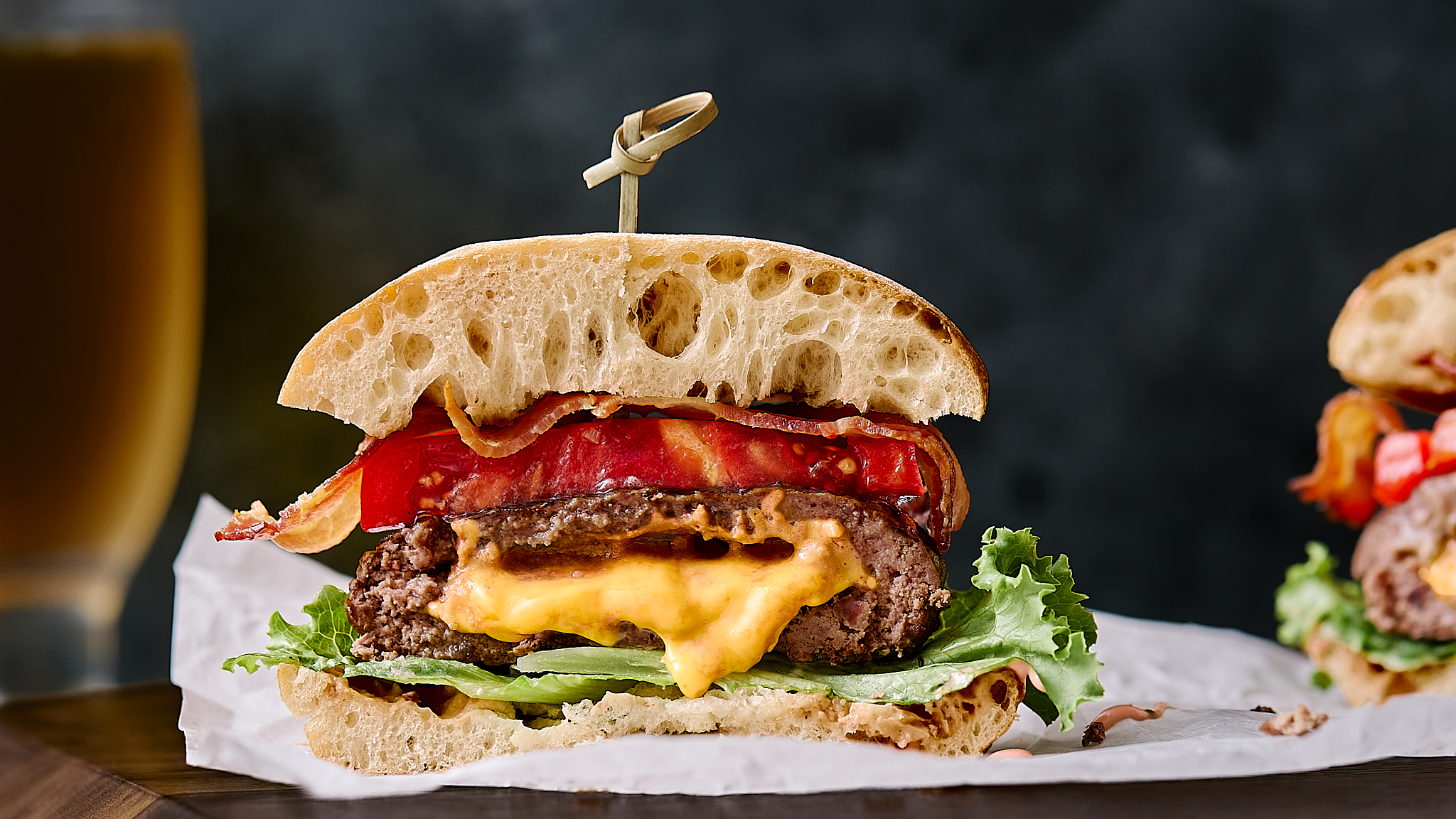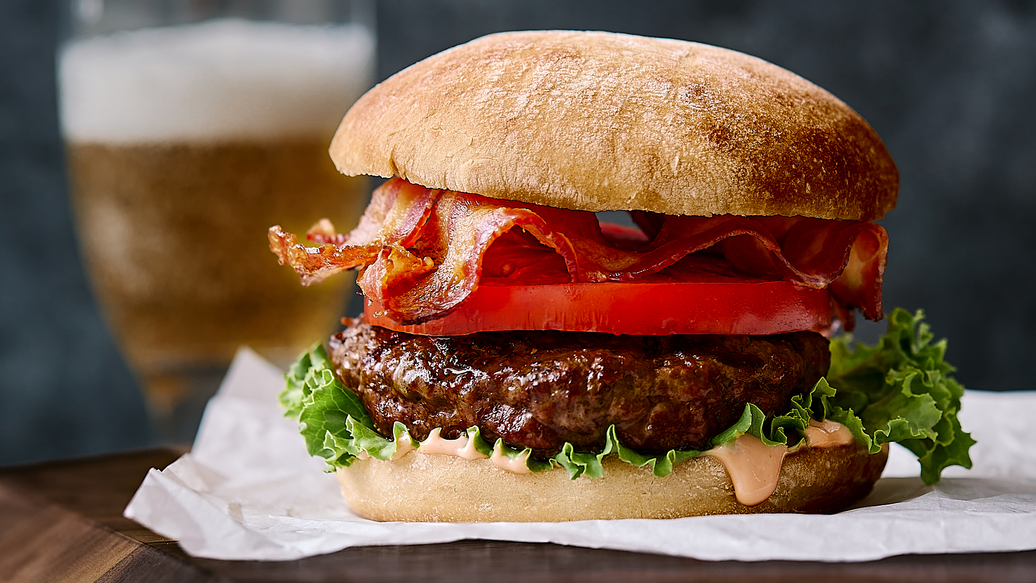 Step 13 -Add the the tomatoes and the bacon to the burgers.
