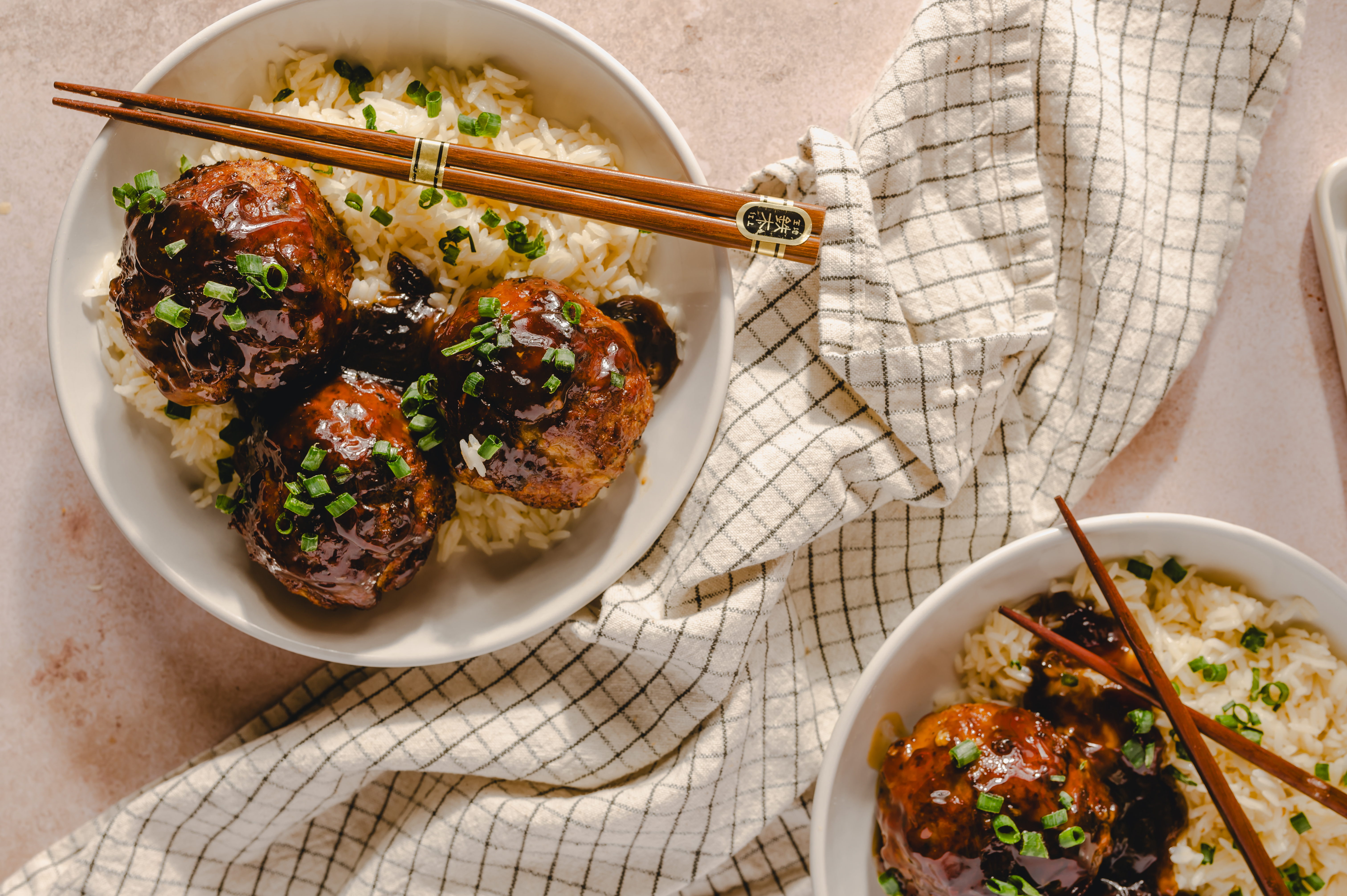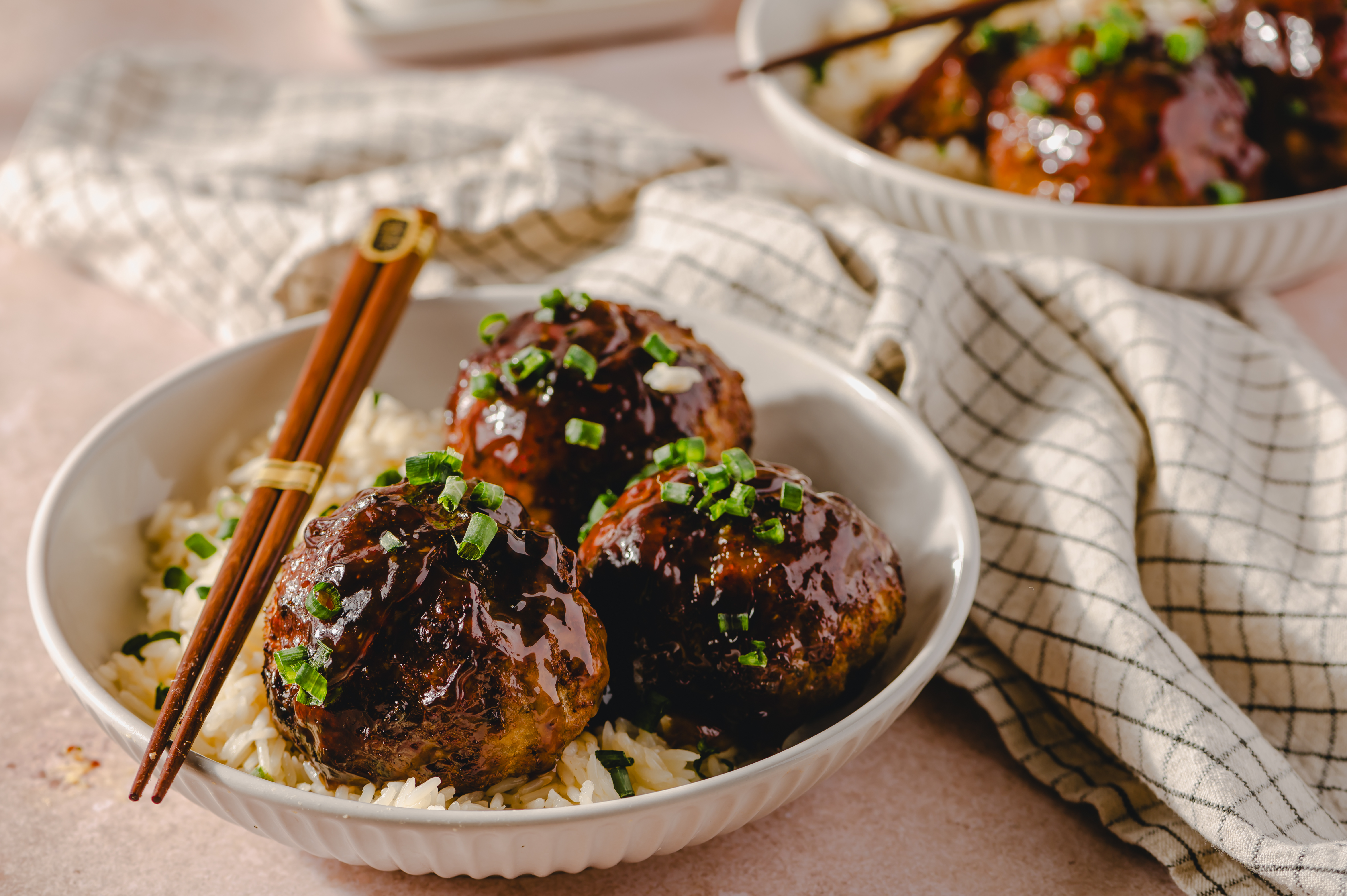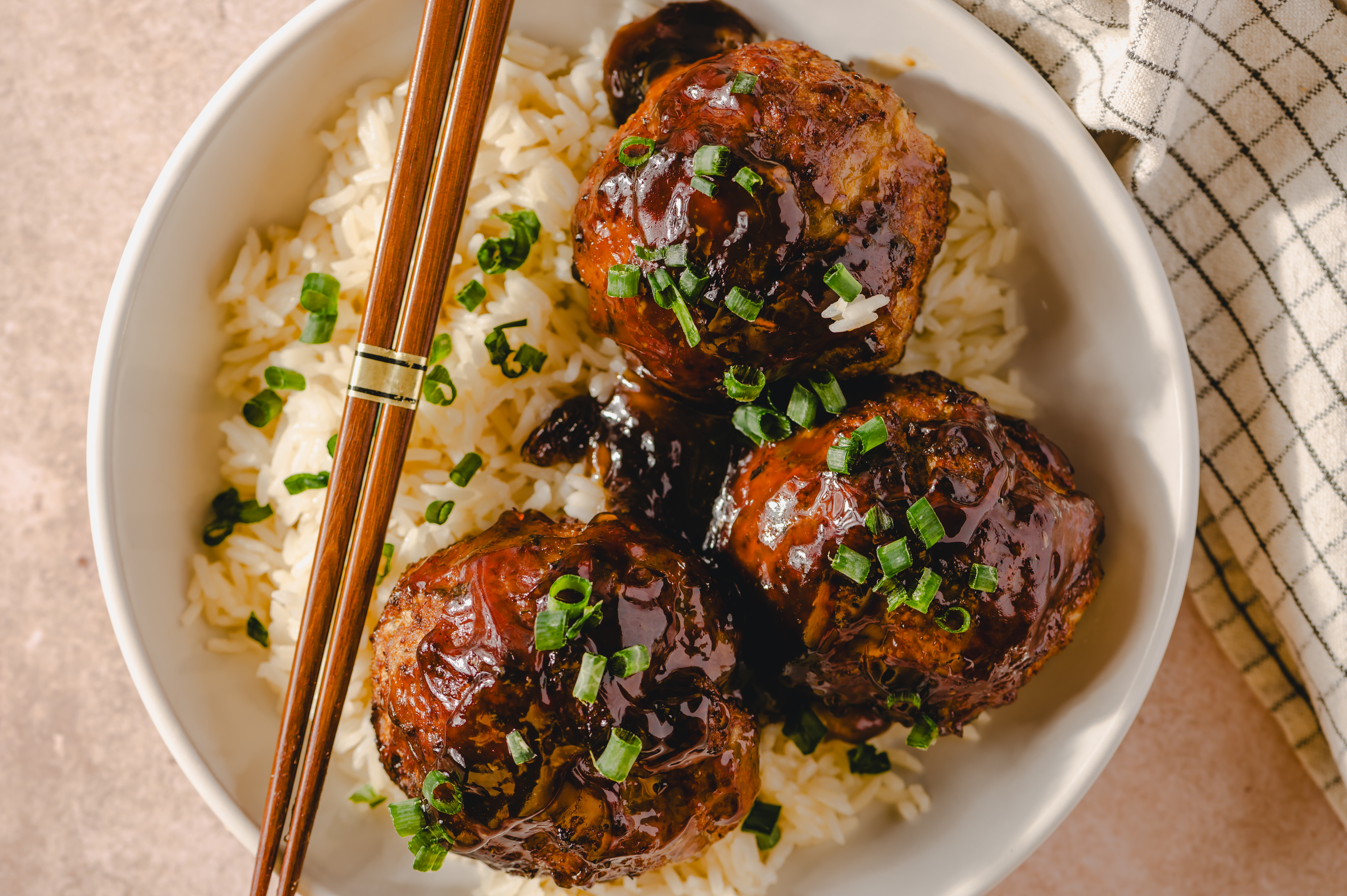 These giant meatballs are mountains of flavors! Sweet Soy Glazed Meatballs are succulent spheres of pork flavor, accented with plenty of Asian-inspired umami and then coated in a sauce you'll want to eat with a spoon. Sweet, savory, nutty, and smoky, the sauce is perfect for coating not only the meatballs, but the bed of white rice underneath it. Sweet Soy Glazed Meatballs are truly special, from the first bite to the last!