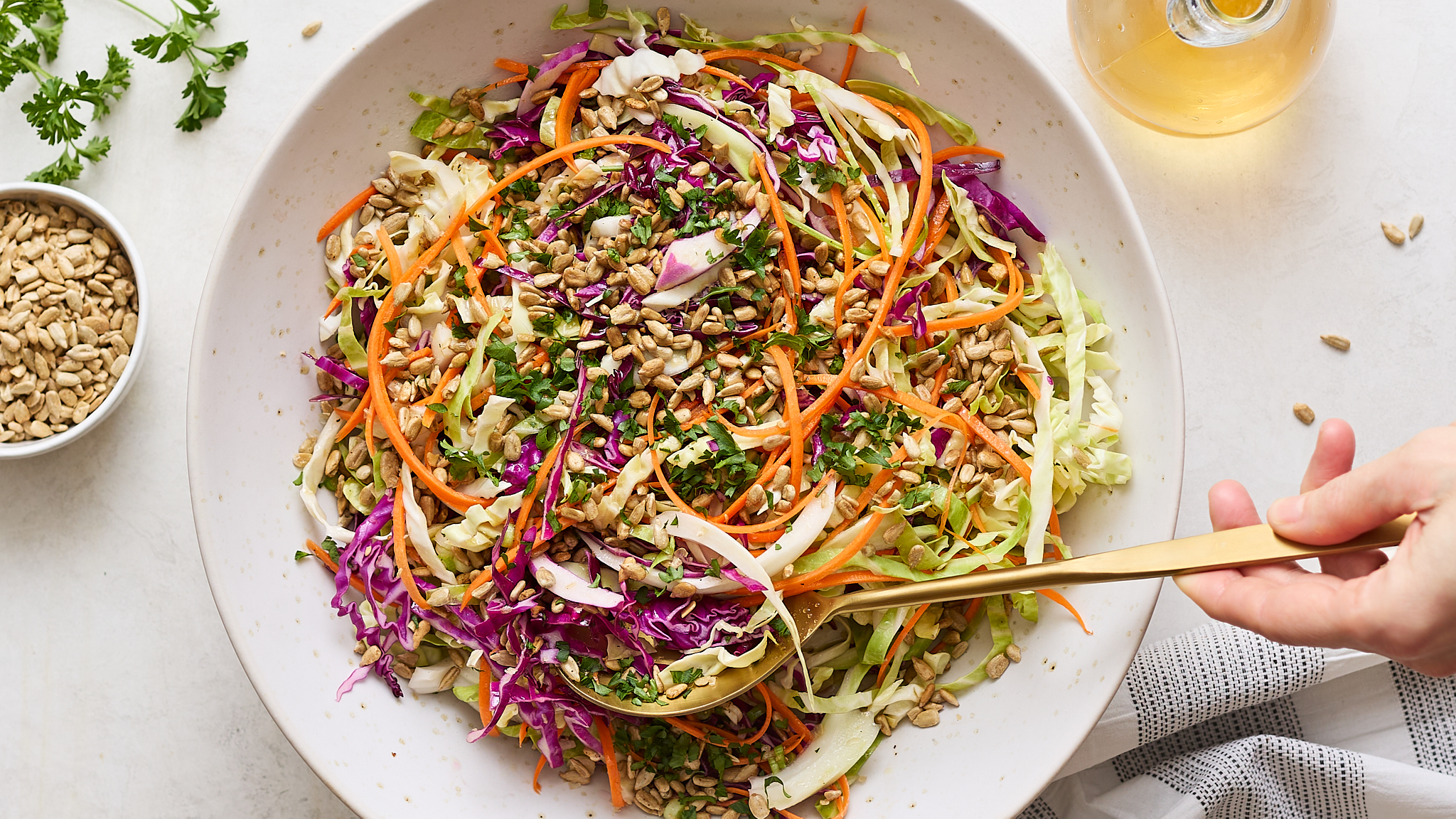 Step 5 -Sprinkle the coleslaw with the parsley and the sunflower seeds.