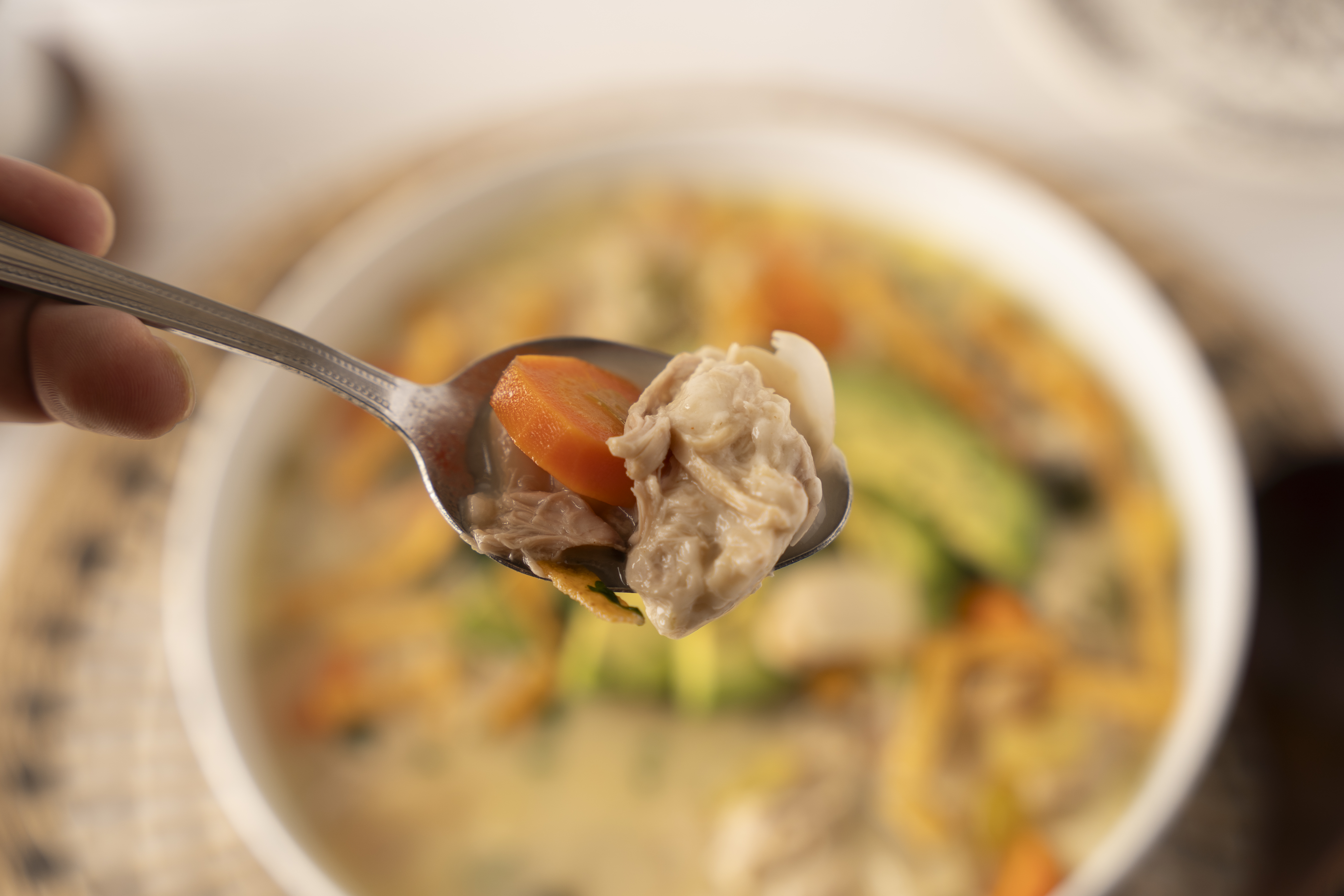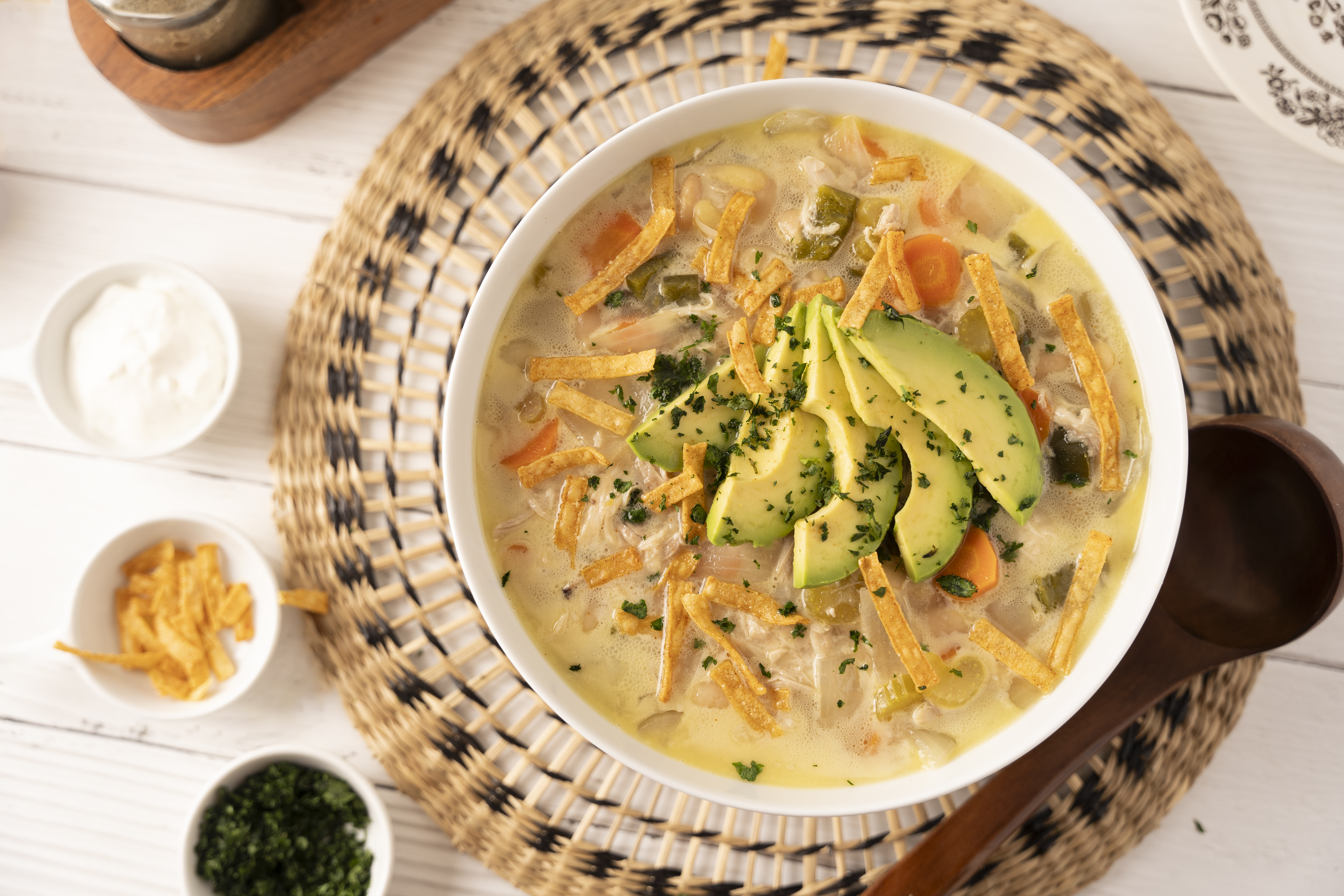 Step 7 -Serve topped with the avocado, the cilantro, the sour cream, and the tortilla strips.