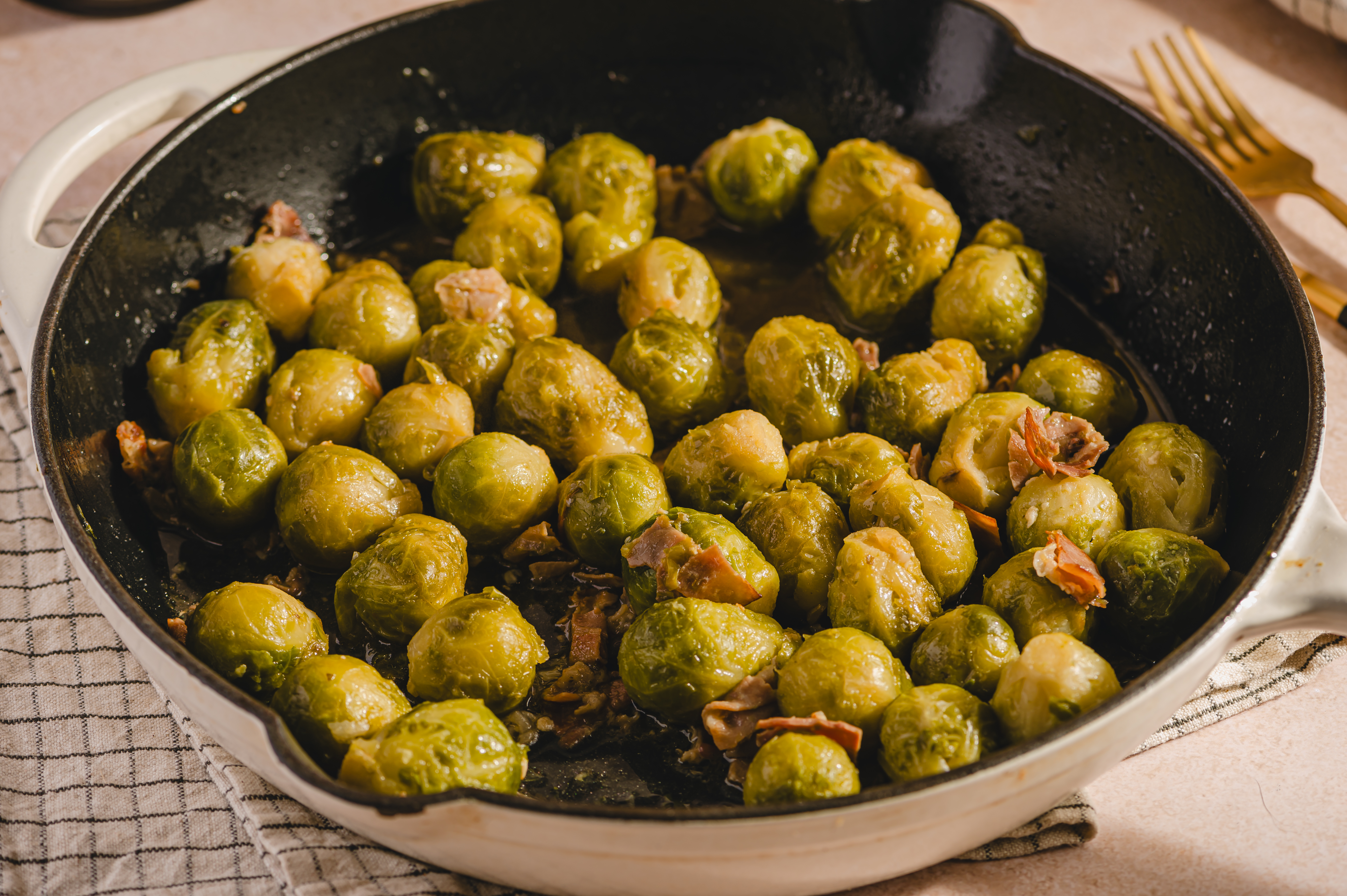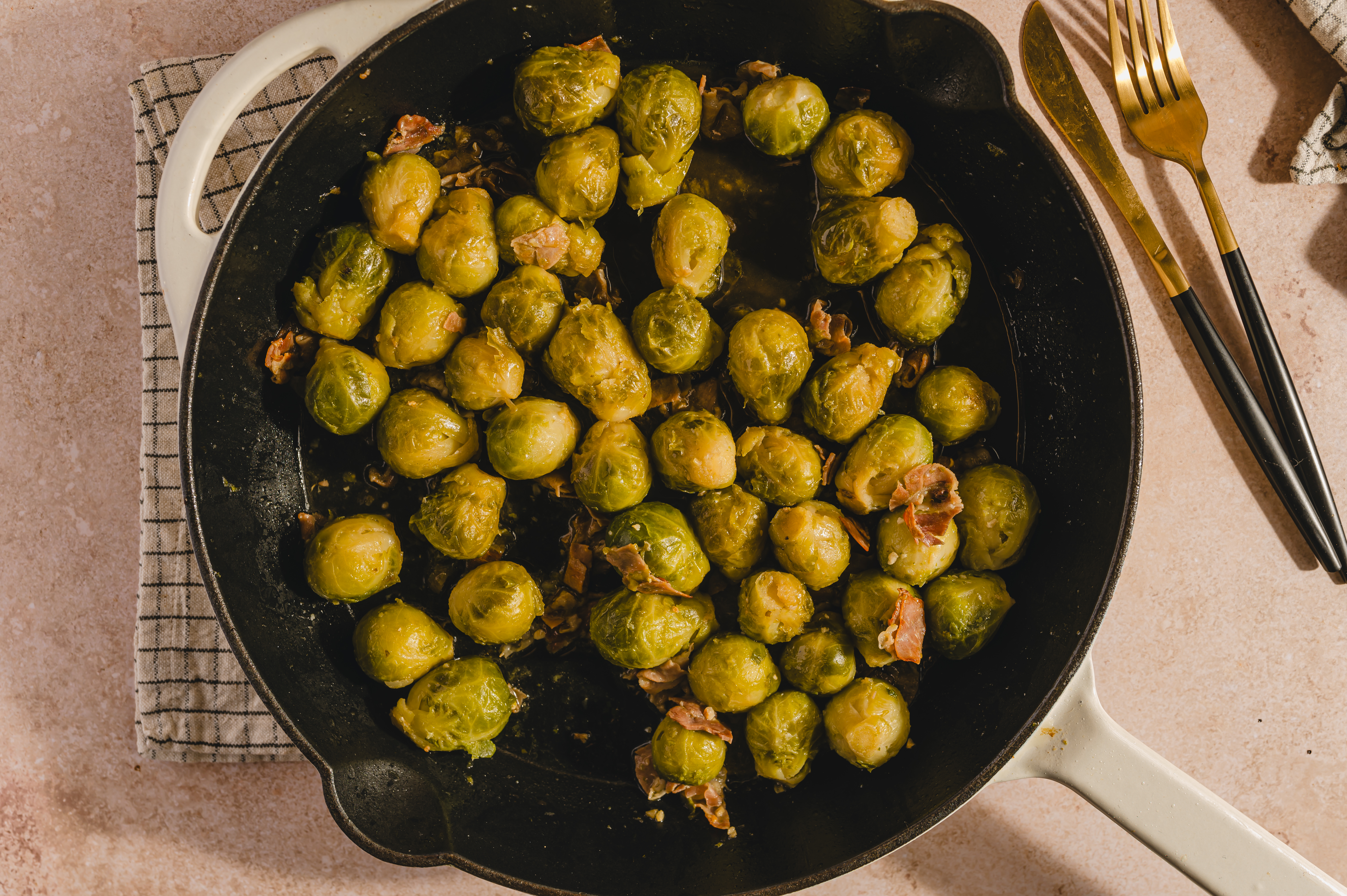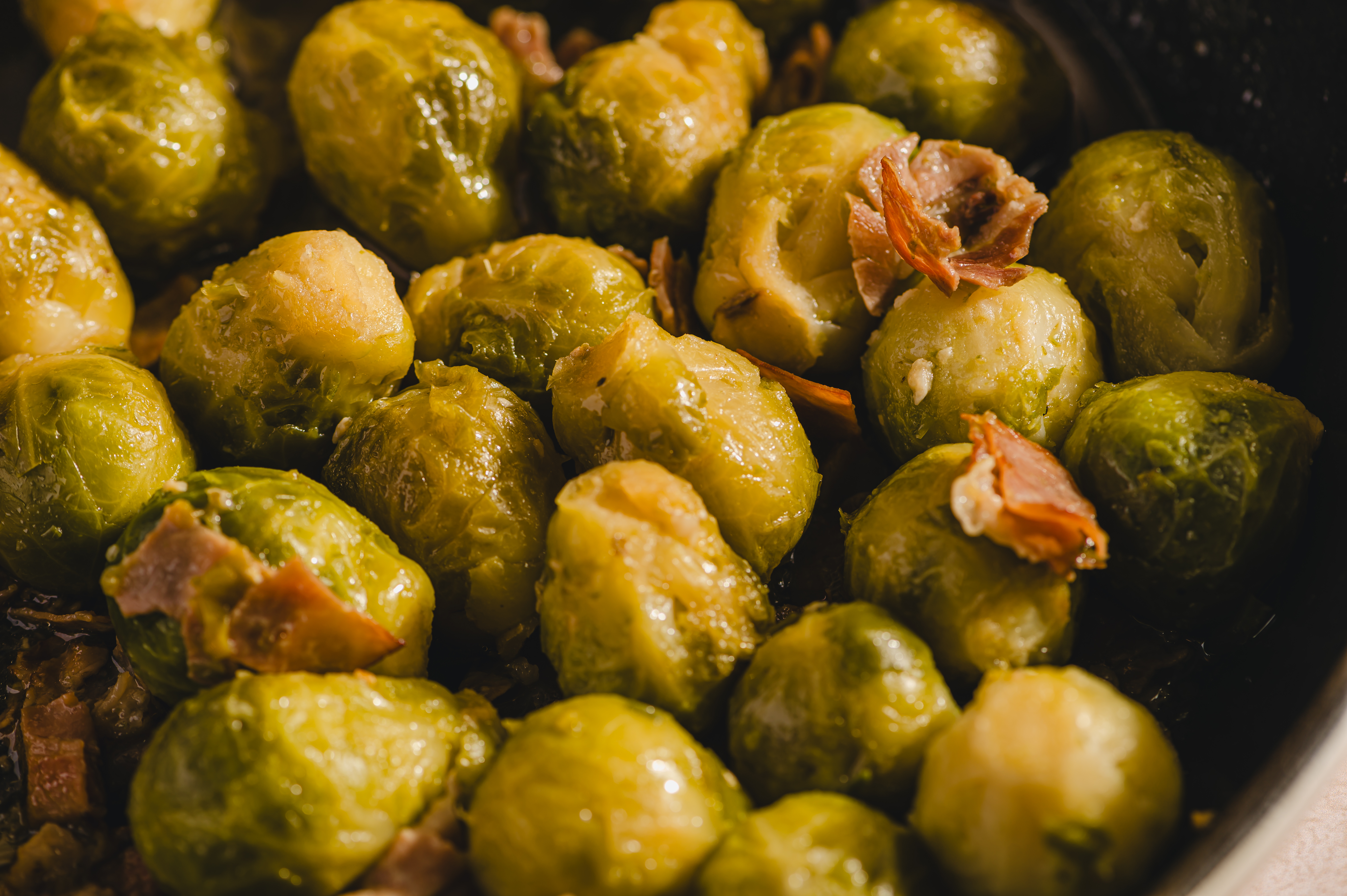 A spectacular Thanksgiving feast needs the perfect vegetable side to go with it! Well, it doesn't get much more perfect than Thanksgiving Brussels Sprouts! The sprouts are tender inside and browned for a crispy outside, surrounded by succulent pieces of pancetta and simmered in broth for extra succulence. It's the kind of vegetable dish that doesn't even taste like vegetables! Nothing beats Thanksgiving Brussels Sprouts when it comes to a holiday spread!