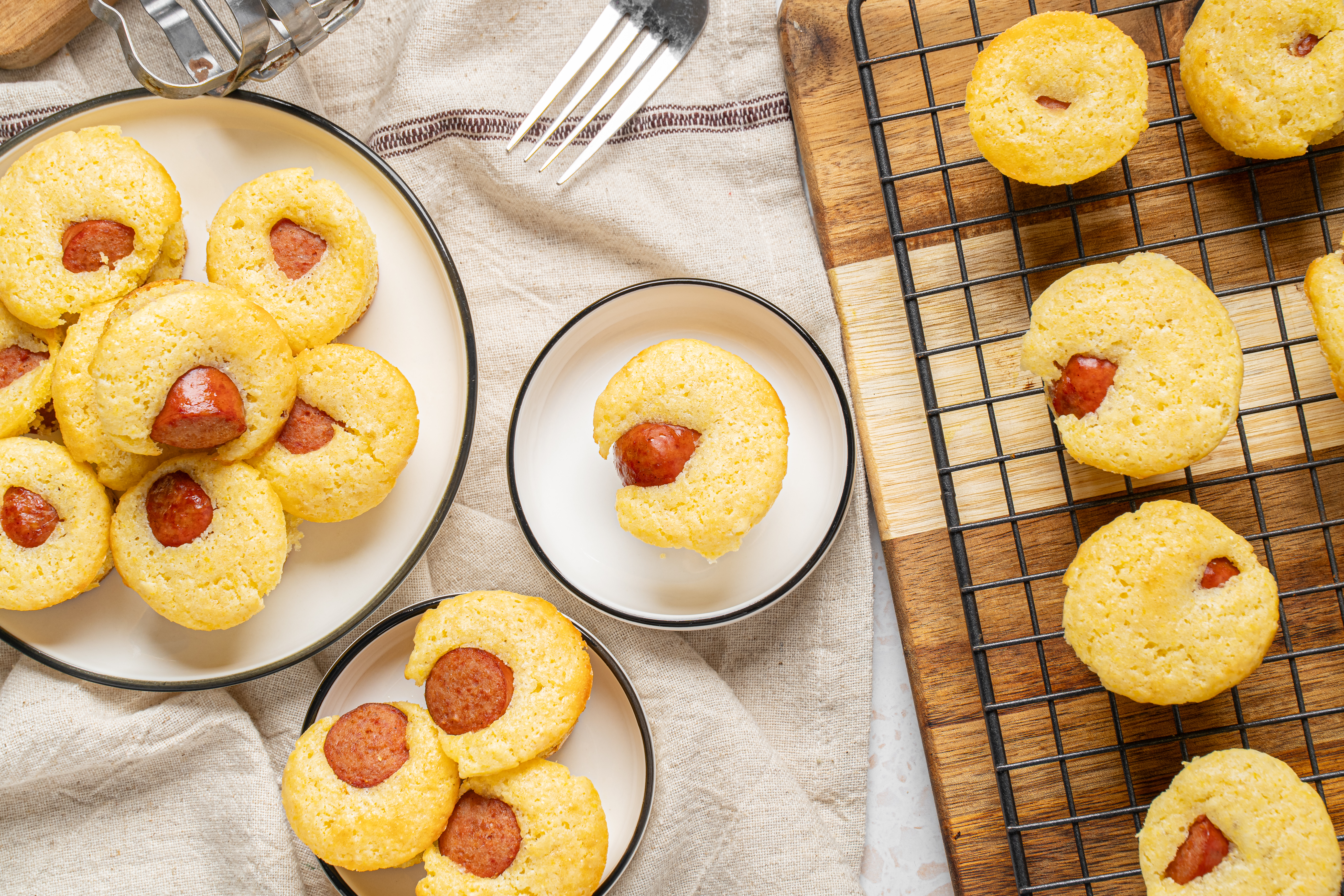 The Lost Dogs have hidden their hot dogs. Only thing to do now is go diving in to find them, teeth first! Inside each of these tender, corn-sweet mini muffins is a savory piece of juicy hot dog. Each one of The Lost Dogs are in fact mini corn dogs you can make at home in a snap! Your taste buds will be so thankful they found The Lost Dogs! How fun!