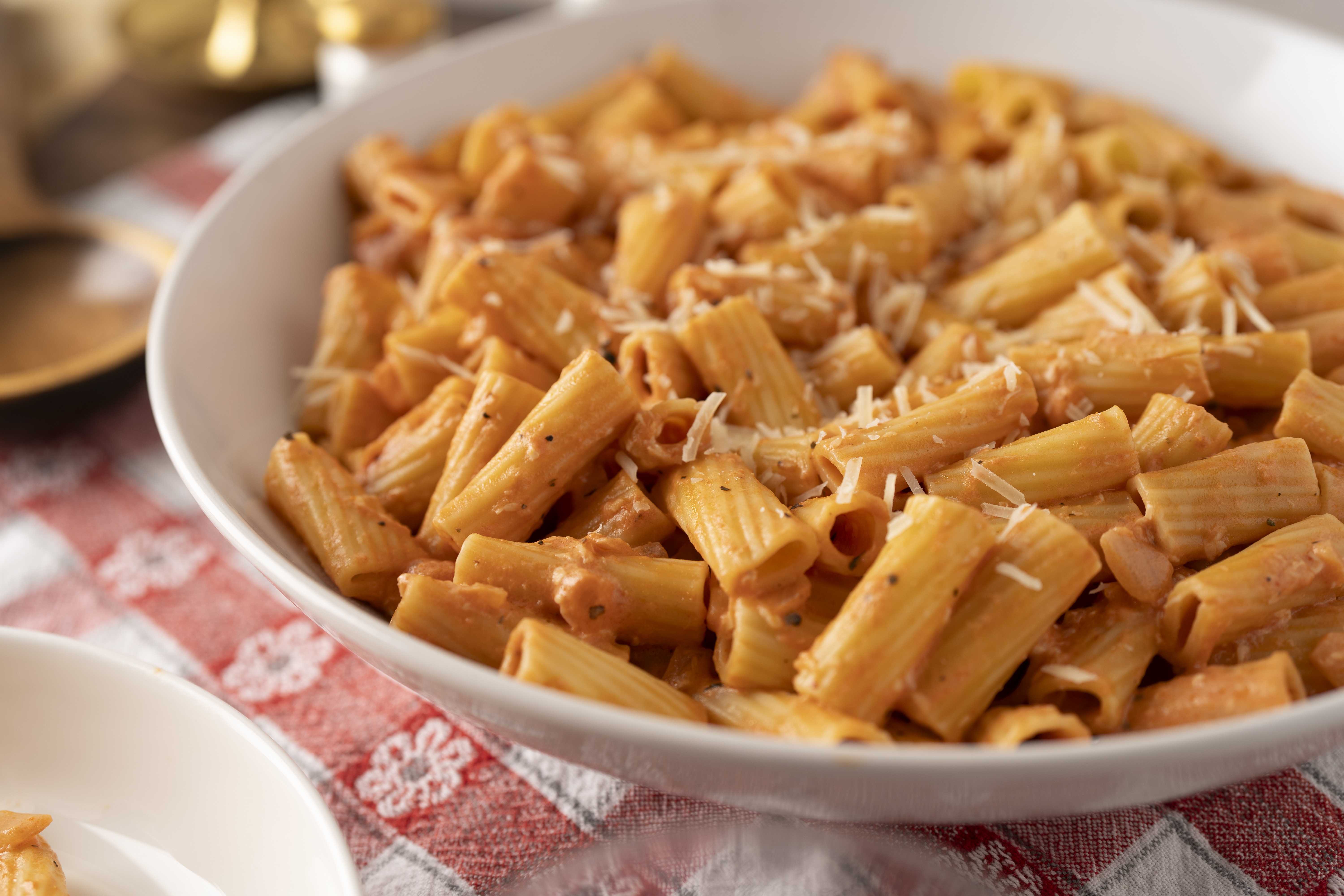 The Pink Pasta?! Yep, you read that right! Well, before you get too frazzled, let us reassure you that this plump serving of pasta noodles probably isn't as hot pink as you first imagined. But they do have a slight rosy tint thanks to the warm and creamy tomato sauce they're tossed in... and we think that's pretty fun. Everyone needs a little glimmer of child-like joy in their life. At least, that's what we believe! So, if you want to add a bit of blushing entertainment to your plate, The Pink Pasta is an unexpected and delicious way to do it!