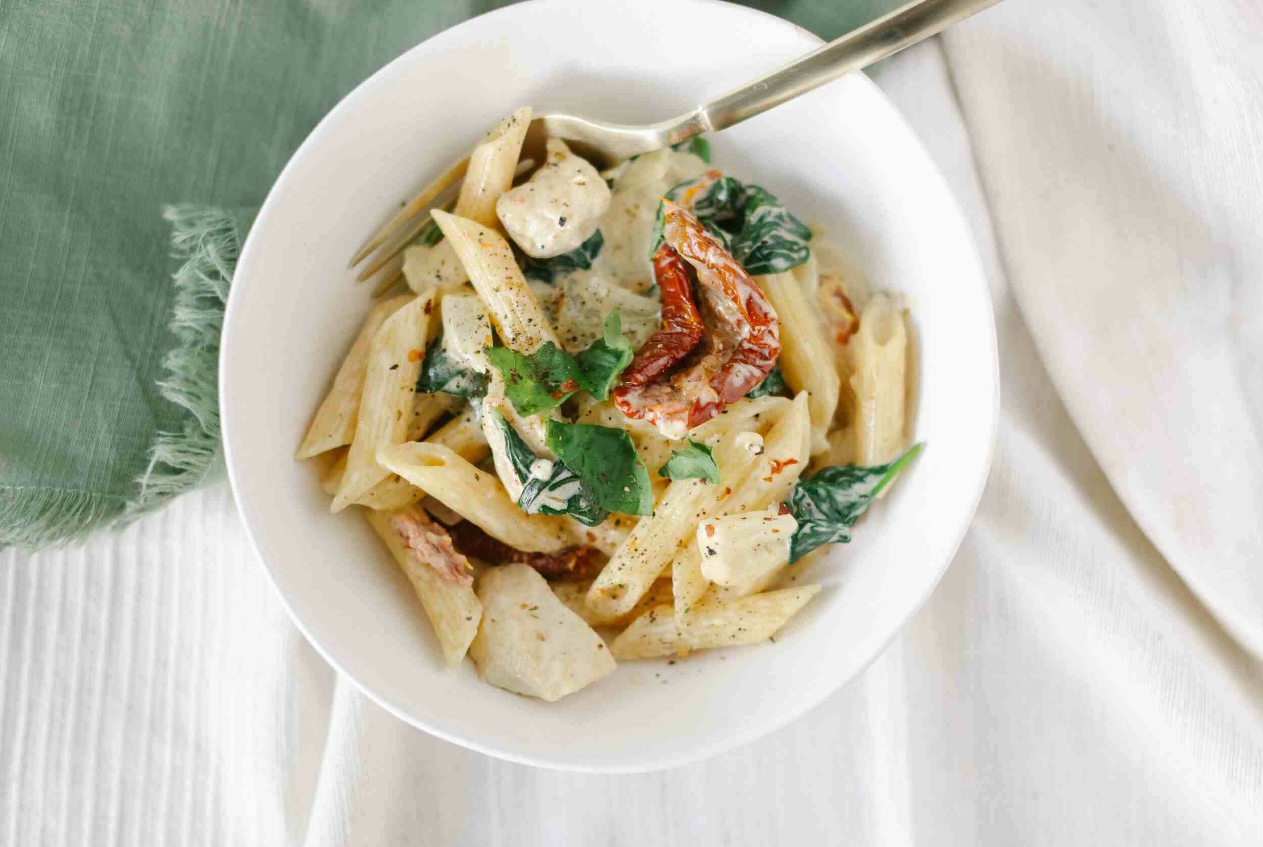 The flavors of Tuscany come together beautifully in this colorful pasta dish! It’s like a mosaic in your mouth! Tuscan Chicken Pasta has the bright intensity of sundried tomatoes, the fatty savory flavor of chicken, the leafy greens crunch of spinach, and a creamy parmesan sauce enchanting all of it! Tuscan Chicken Pasta has a sunny lightness in its taste but it's hearty enough to keep you satisfied. It can be shining on your table in 30 minutes or less.