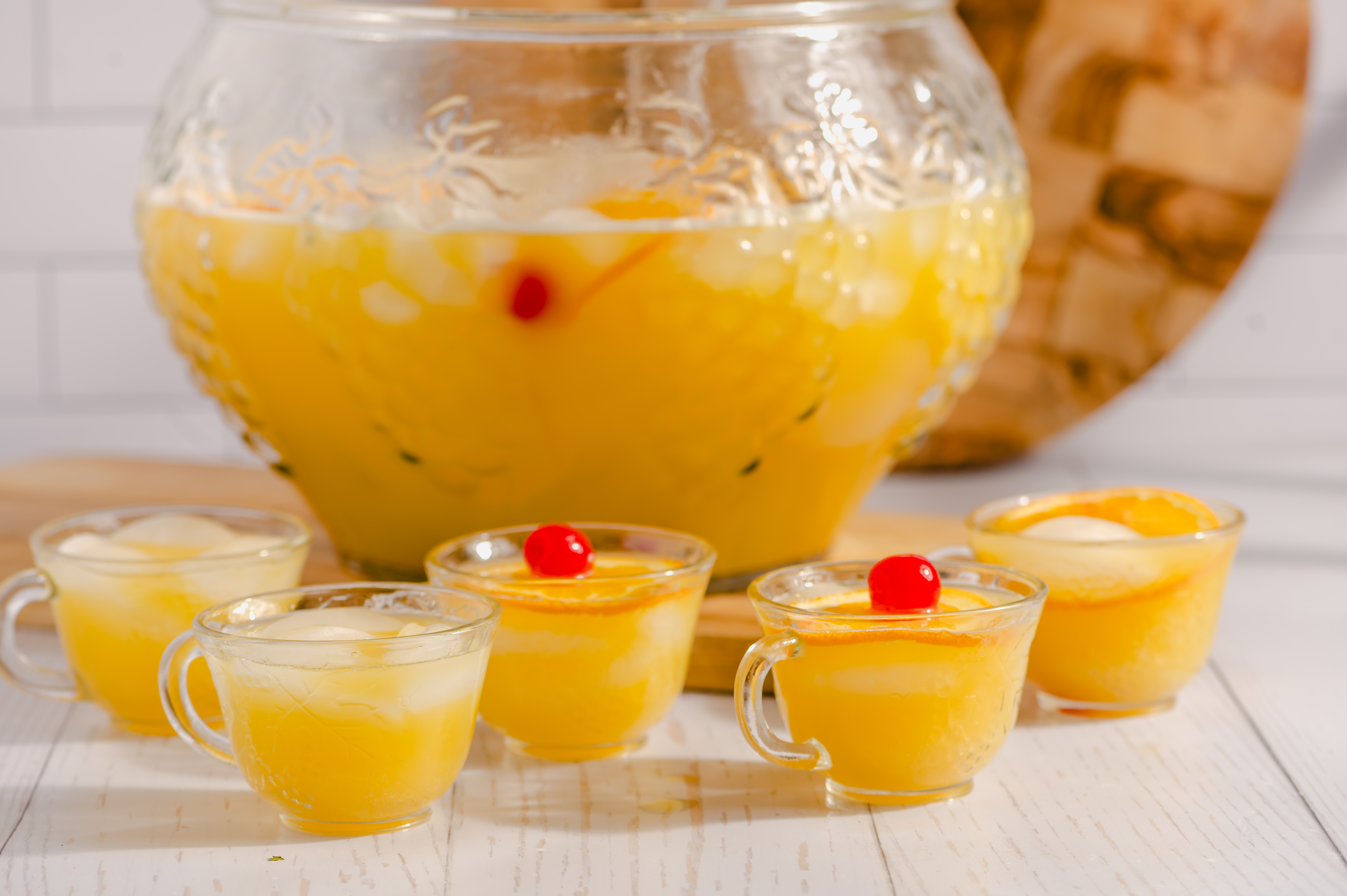 The right drink at the right time makes all the difference. Ultimate Party Punch transforms a gathering into a party, and that's a fact! This golden brew is tangy and sweet, with cherries and orange slices taking a luxury swim within! With smooth vodka added in, Ultimate Party Punch is sure to make people feel a little bit more joy than before! Ladle yourself a cup of celebration!