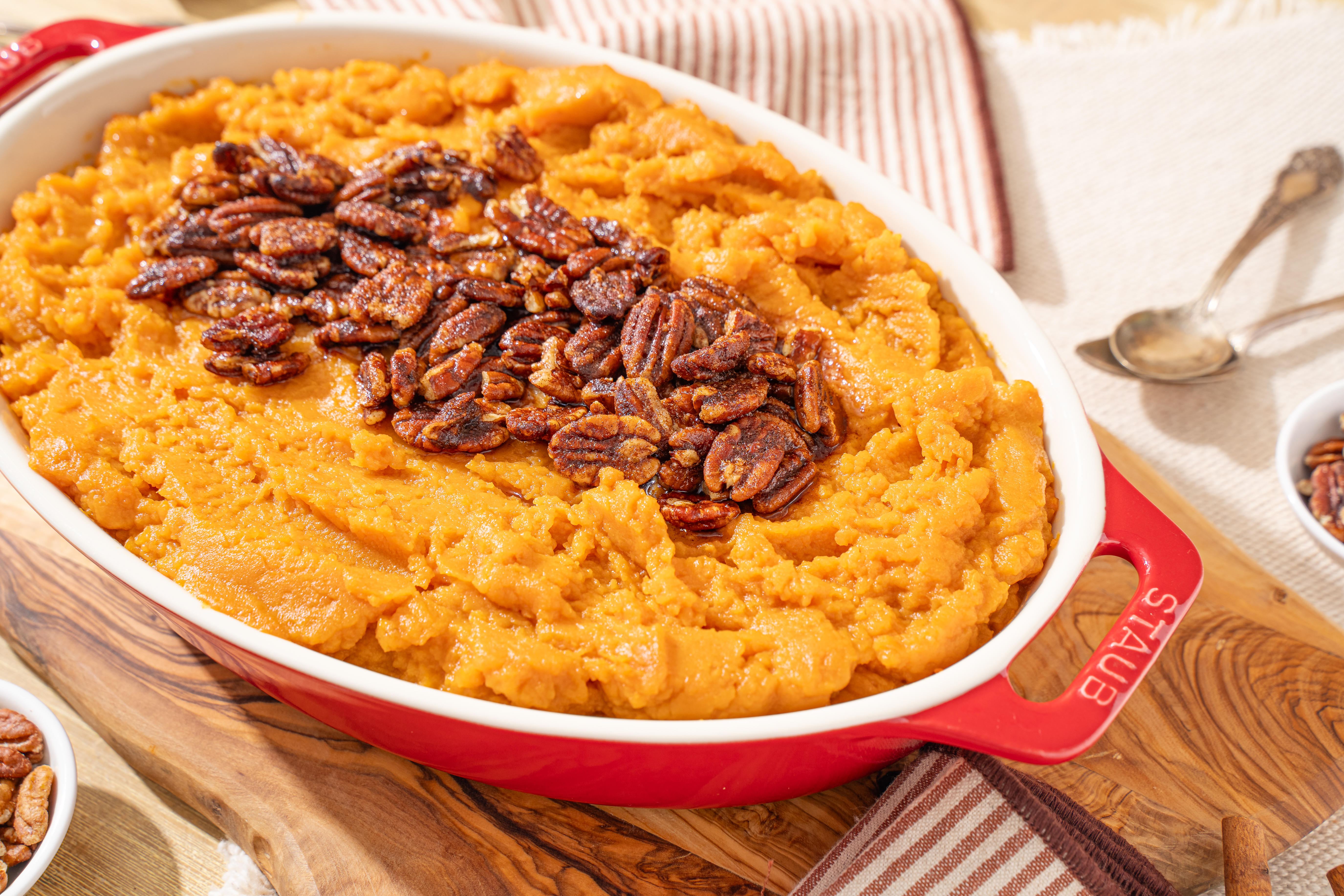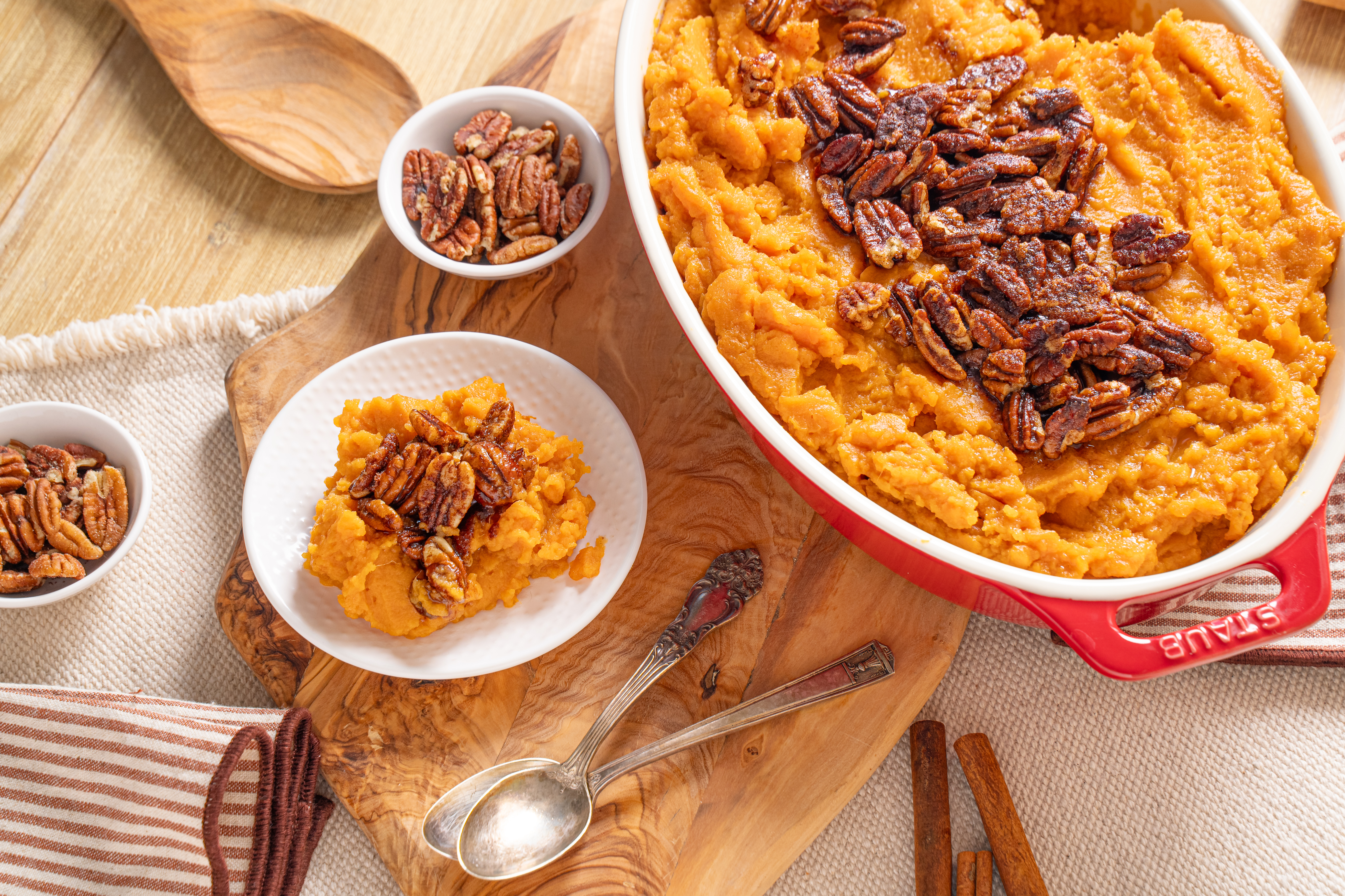 Leave the marshmallows in the bag because these Ultimate Thanksgiving Bourbon Yams don't need 'em! Nope, all the sweetness you need can be found mashed and whipped together in this sugary, bourbon-infused take on the classic Turkey Day side. It obviously still had to be topped with something, so we chose some brown-sugar-cinnamon-coated pecans for your satisfaction instead. The crunchiness atop the creaminess is just the best combination. Give them a try and you'll be sure to agree that these are, in fact, the Ultimate Thanksgiving Bourbon Yams!