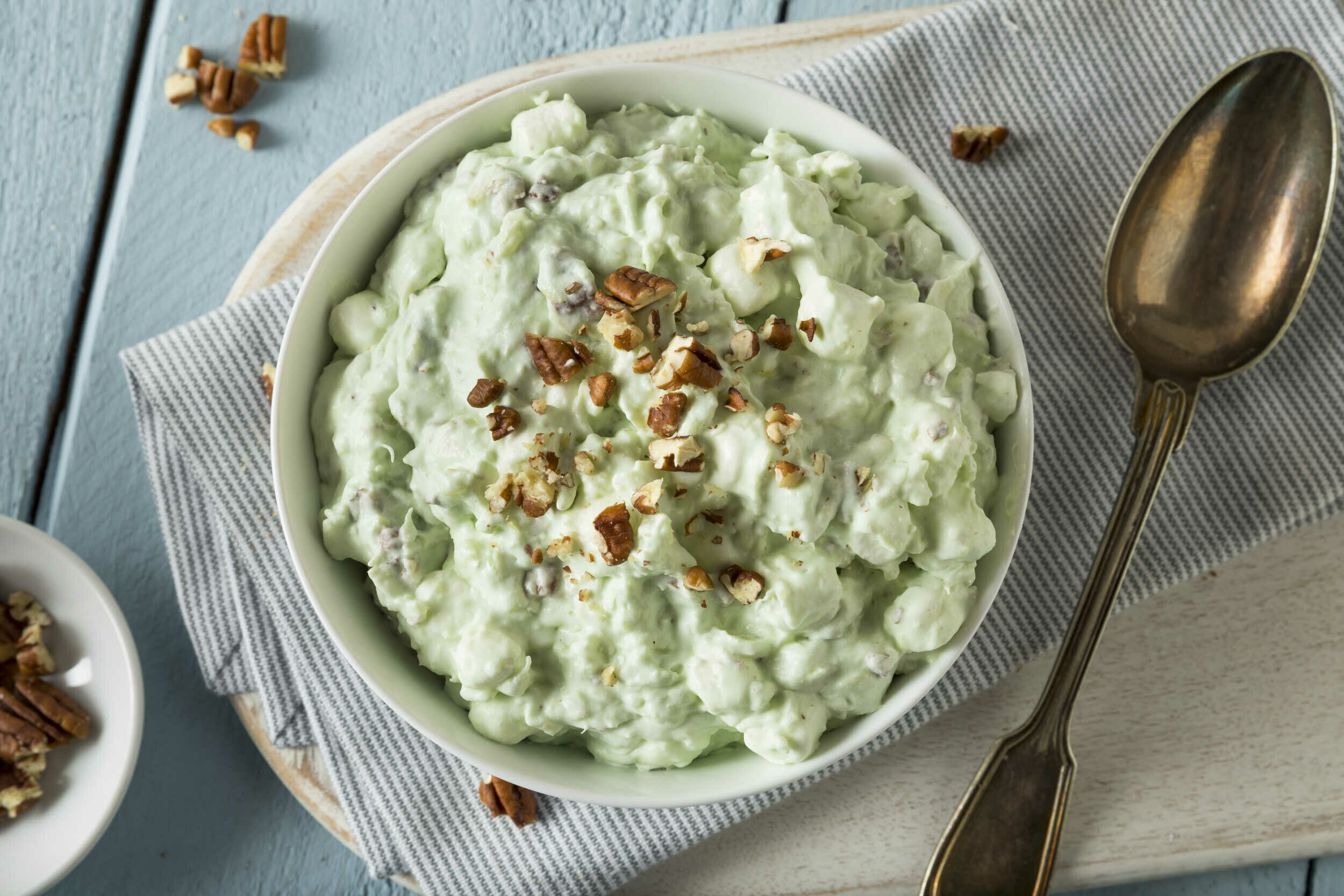 Time to bust out a classic! Watergate Salad is a light, gleaming green treat that brightens up potlucks, dinners, and midday snacks! Nutty, creamy, and fruity with delectably chewy marshmallows and crunchy pecans, it's irresistibly sweet and refreshing! Invoking pleasant memories of backyard cookouts and afternoon picnics, Watergate Salad tastes like summer no matter the season.