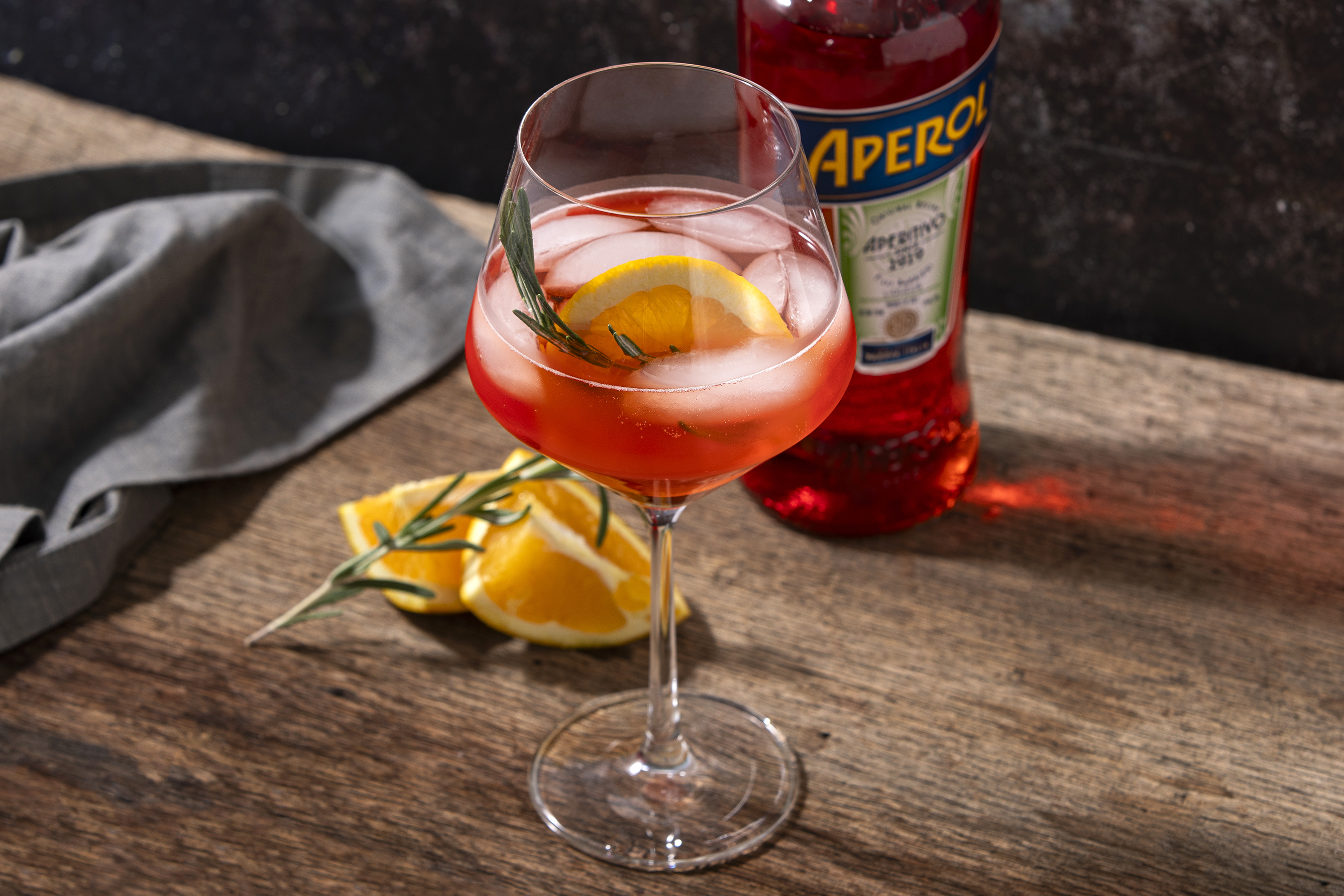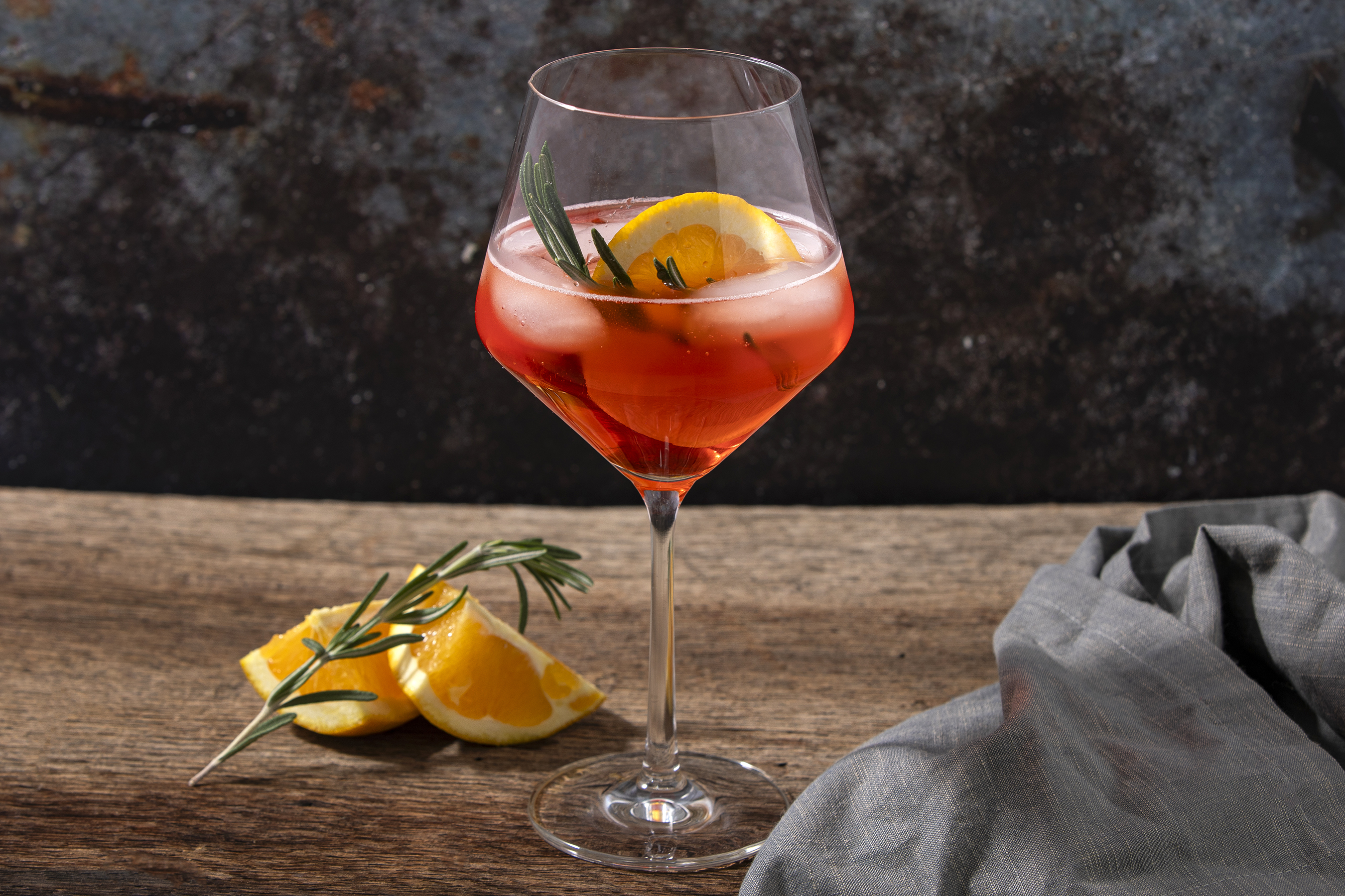 Ah, don't let the gloominess of the colder weather bring you down! Brighten things up with a Winter Aperol® Spritz! When you're tired of the creamy, hot beverages you've been sippin' on, a splash of something fruity and refreshing is just what you need. There's a hint of tangy cranberry juice and a sprig of festive rosemary to keep the flavors true to the season you're in. Cheers to Winter Aperol Spritz! Now, go find some sunshine to warm your soul!